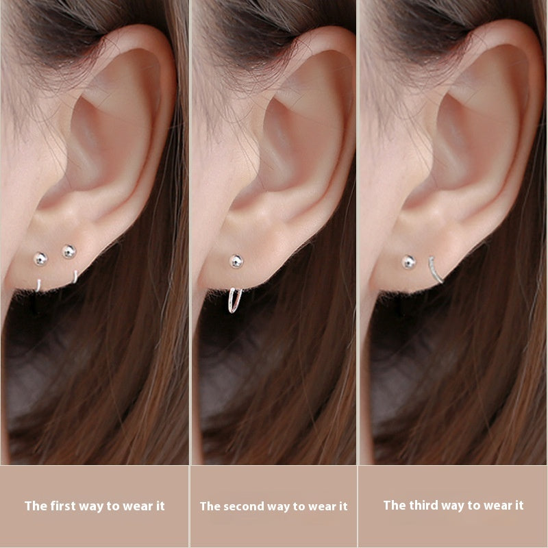 999 Sterling Silver Earrings Stud Earrings Female Cold Style Trendy Ear Bone Stud