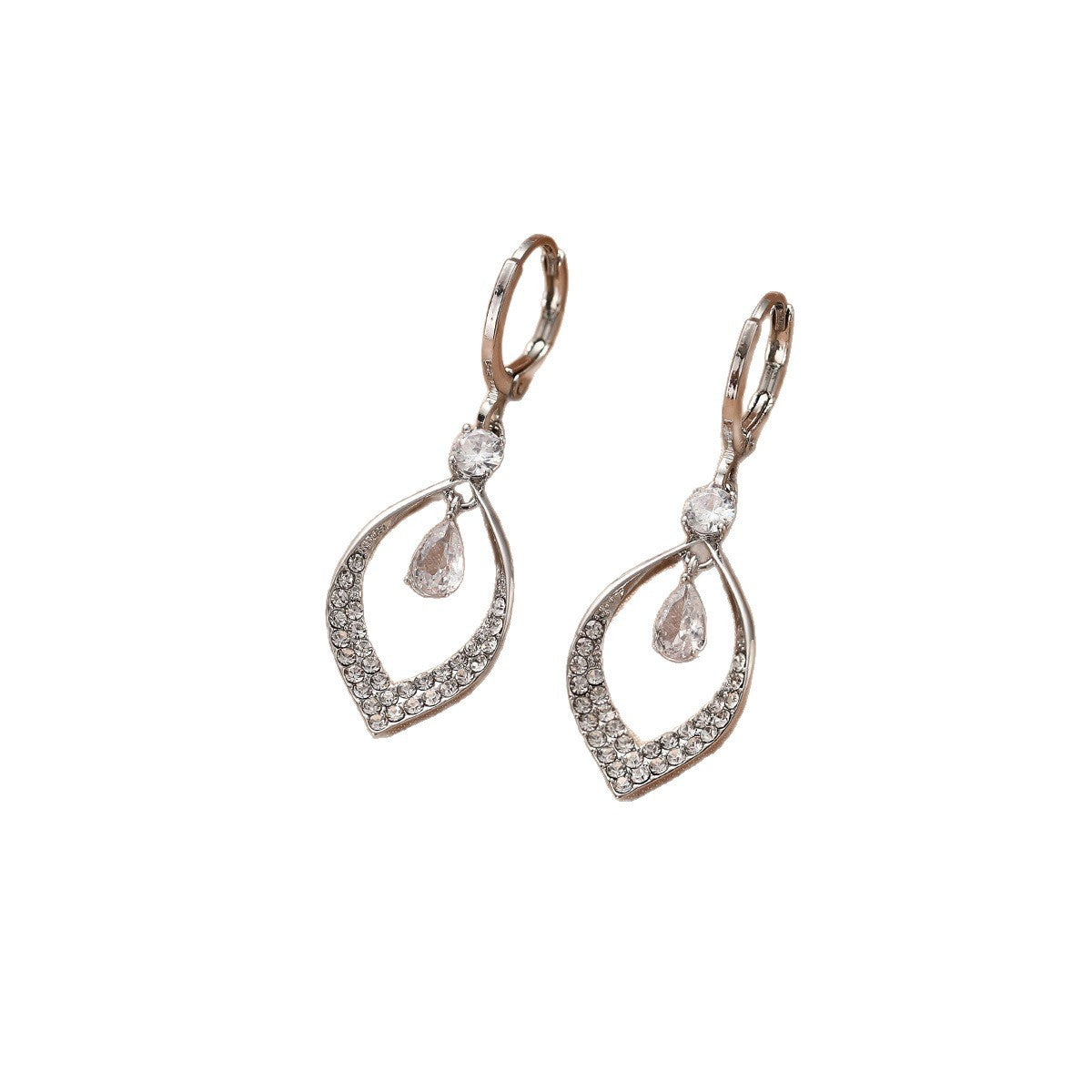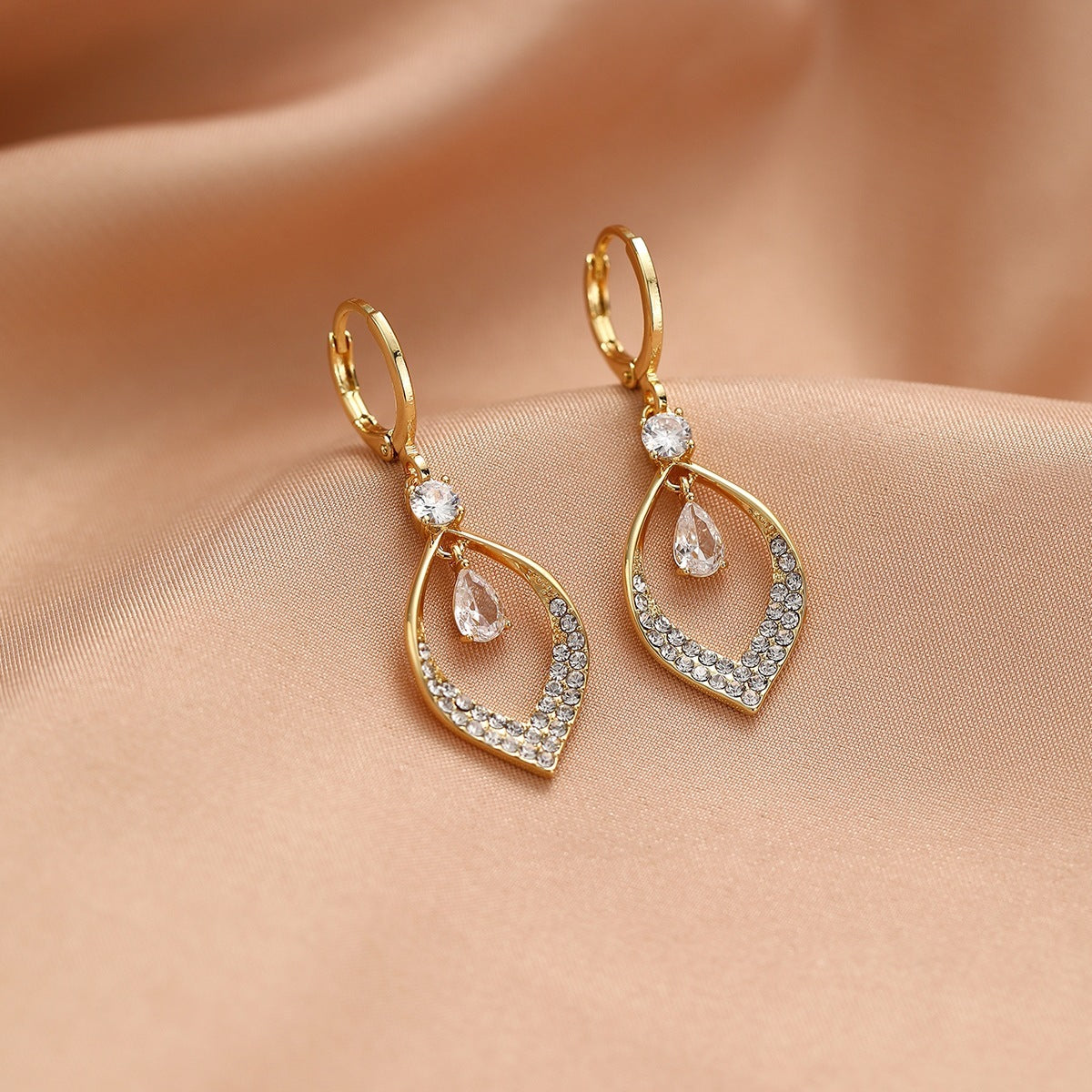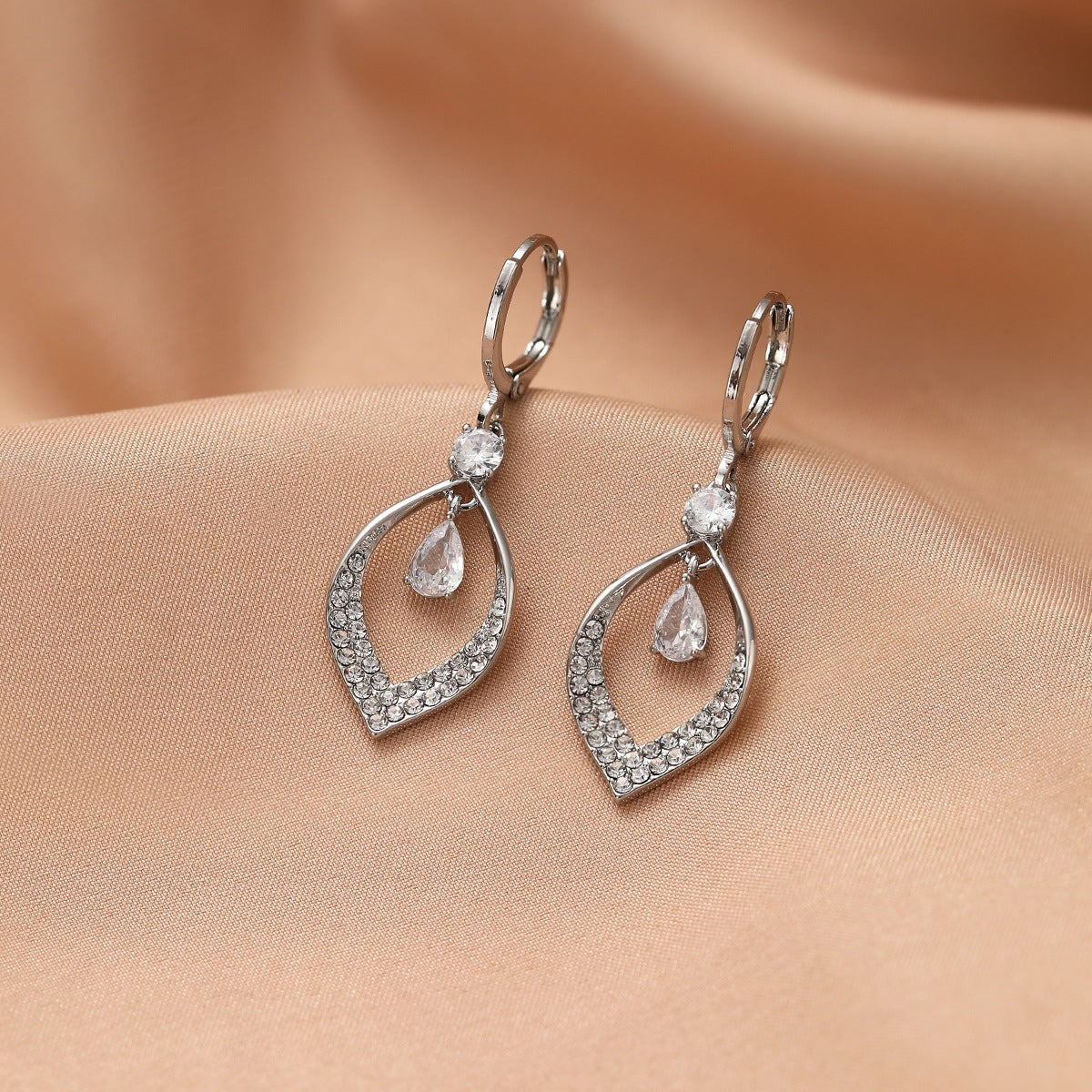 A Woman With Elegant Zircon Water Drop Tassel Earrings