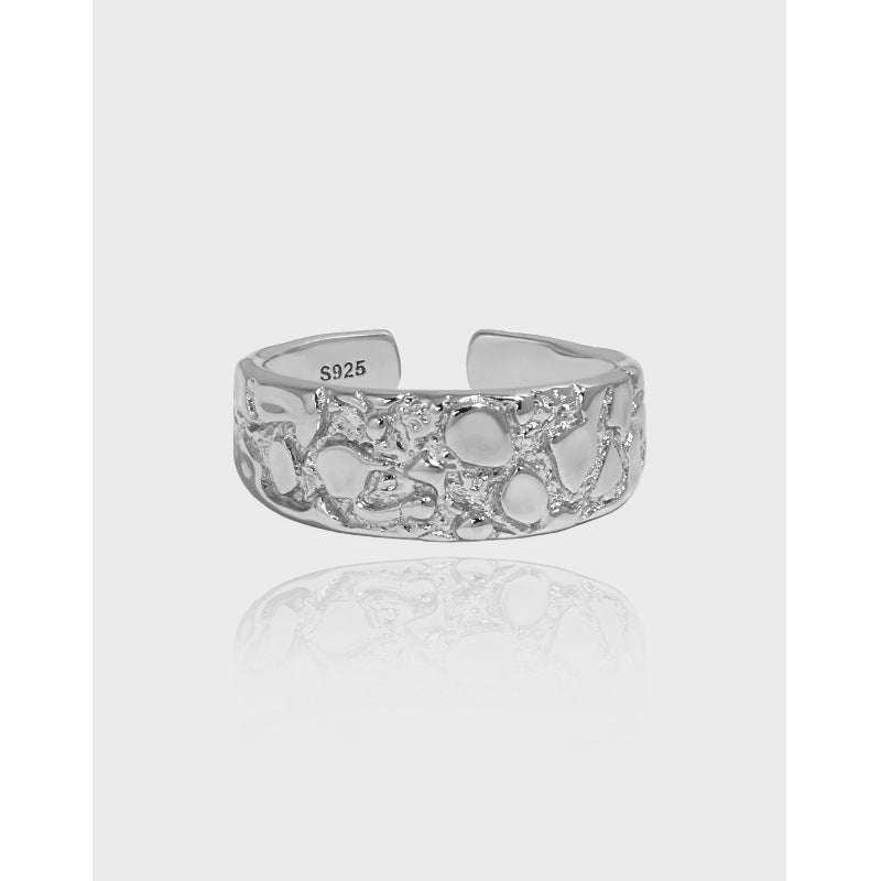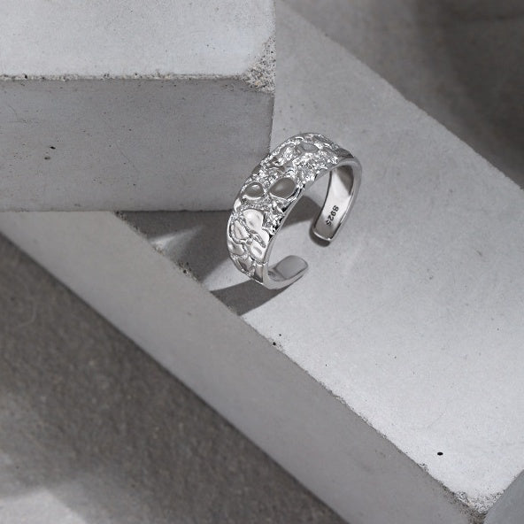 All-match Hammered Texture S925 Openning Silver Ring Female
