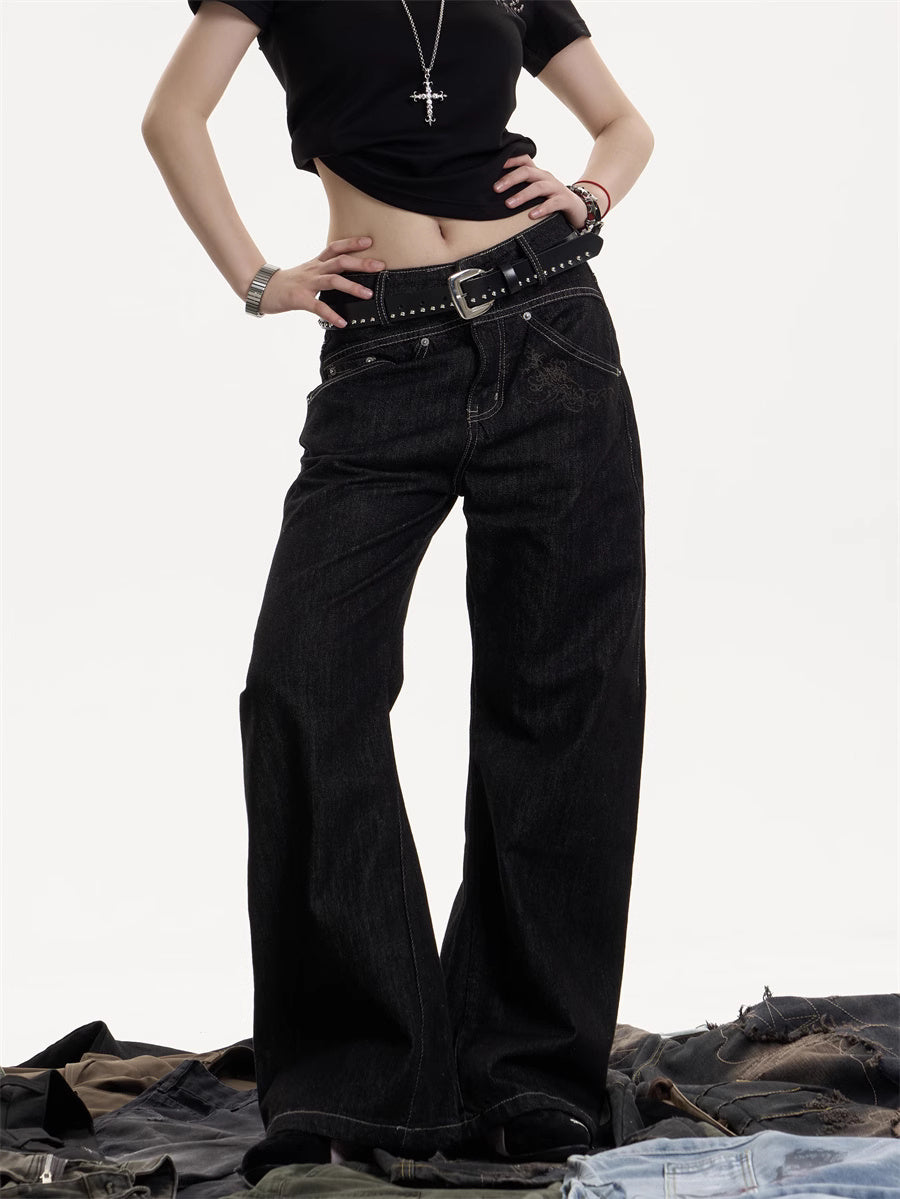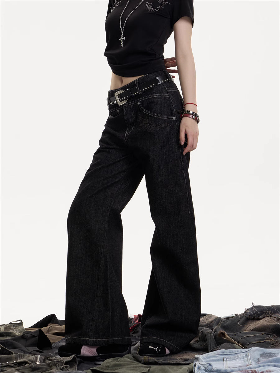 American Retro Cleanfit Wide Leg Jeans Straight Casual Mopping Trousers