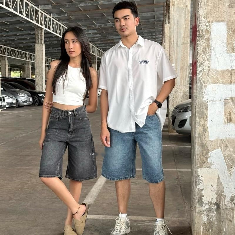 American Retro Washed Loose Design Fifth Pants Men