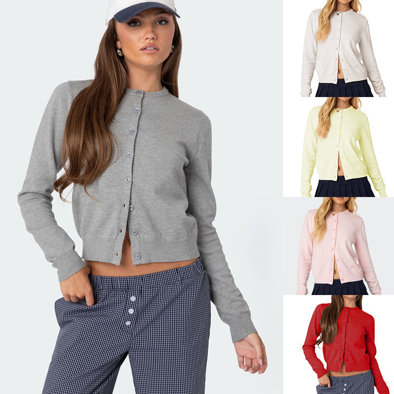 Autumn And Winter Women's Clothing Solid Color Buttons Cardigan Long Sleeve
