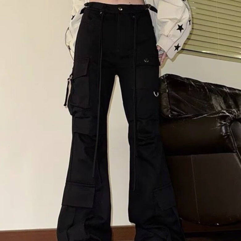 Bootcut Trousers Women's Spring And Autumn Versatile Pocket Flared Overalls
