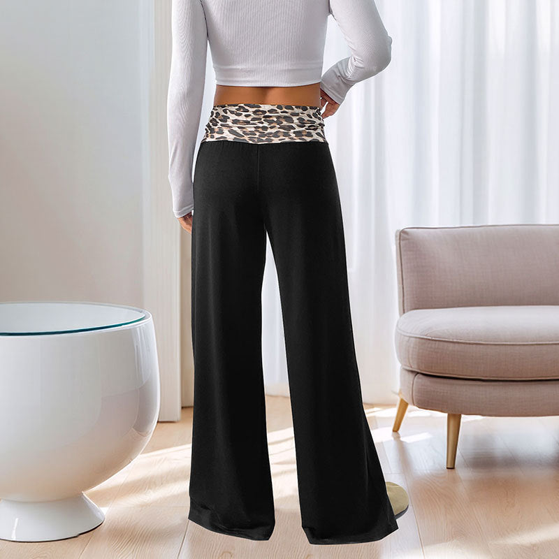 Casual Patchwork Contrast Color Leopard Print Wide Leg Pants For Women
