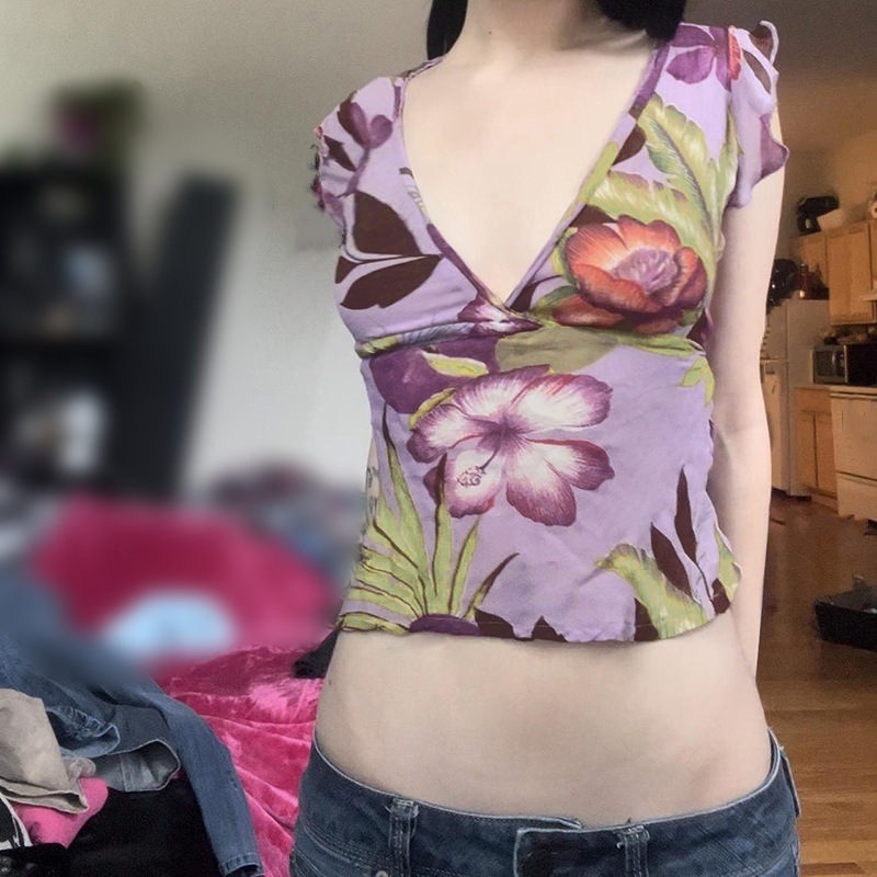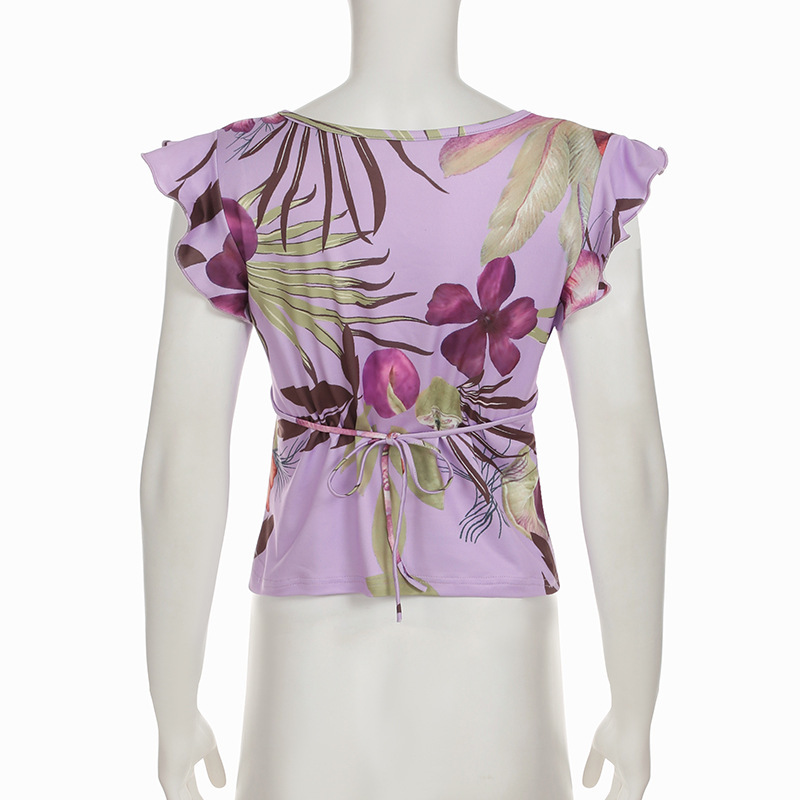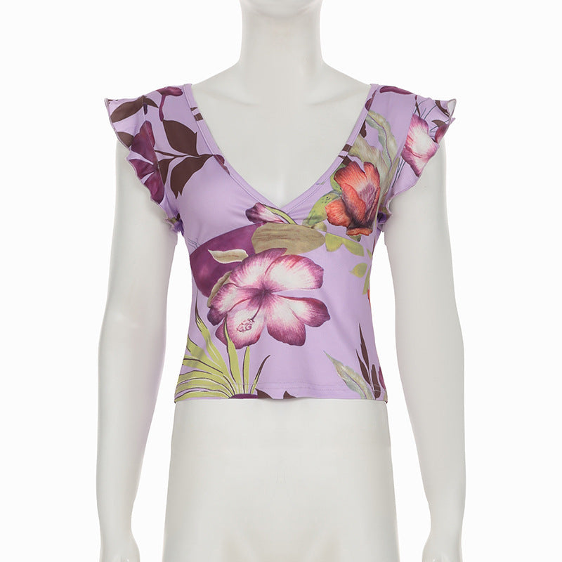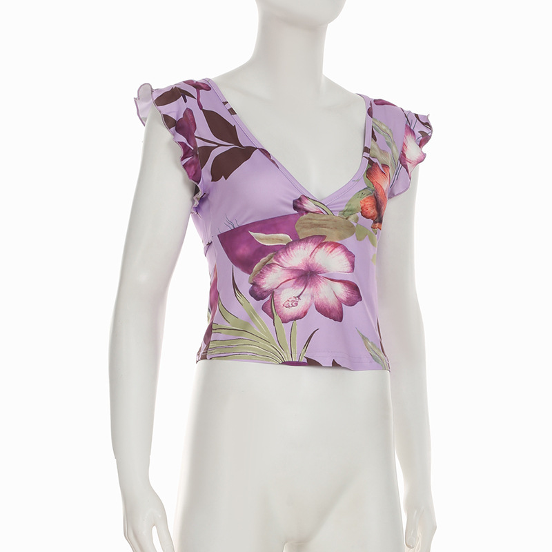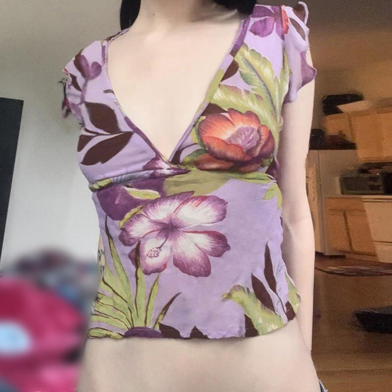 Casual Printed Slim Fit Stringy Selvedge Short Sleeve Navel T-shirt