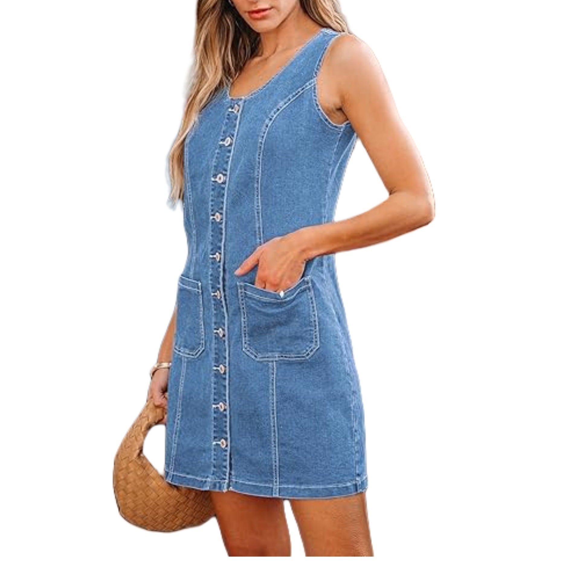 Casual Solid Color Sleeveless Mid-length Waist Dress