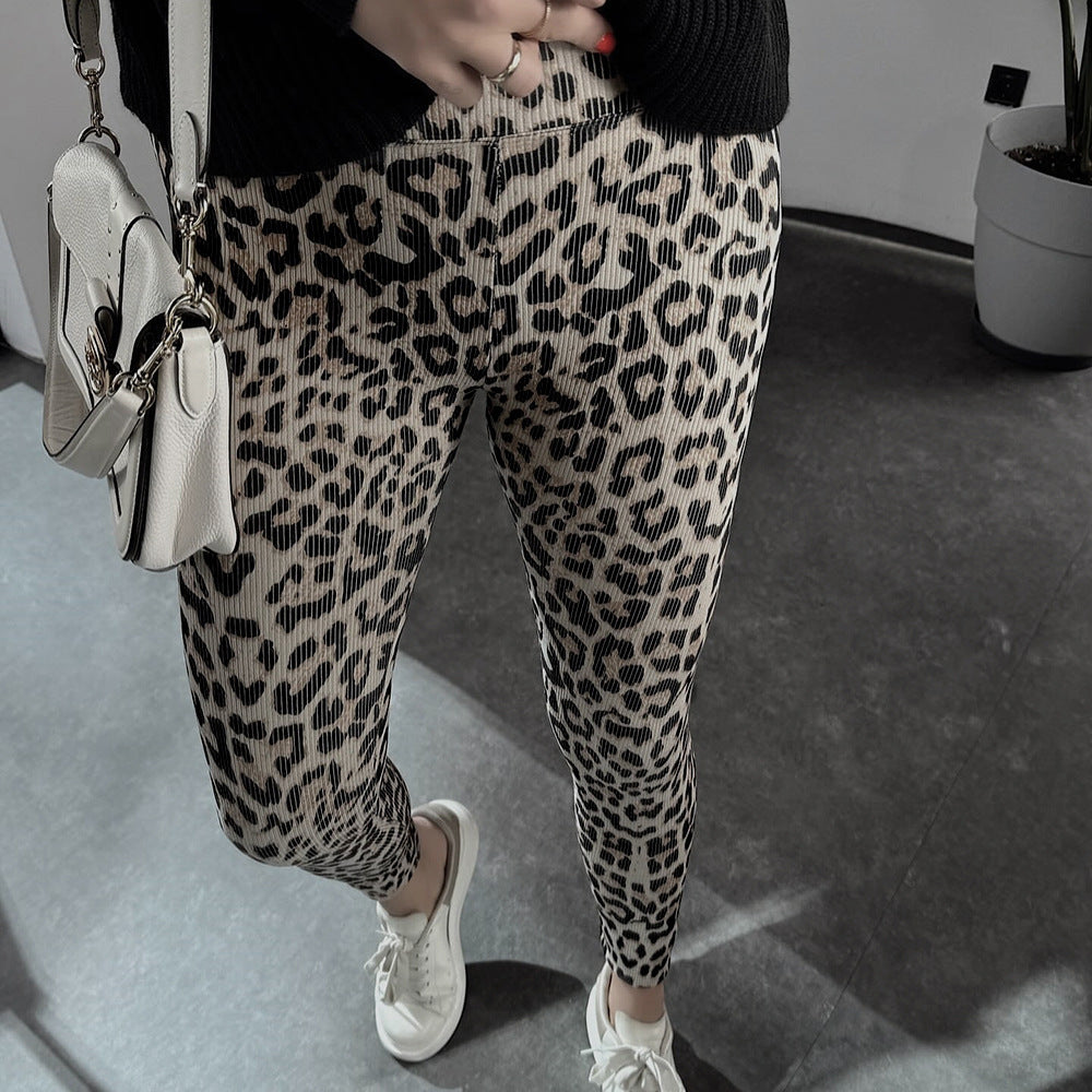 Comfortable High Waist Soft Leopard Print Home Trousers
