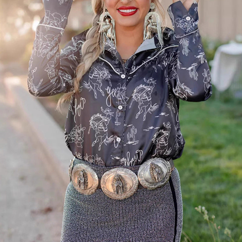 Denim Ethnic Street Printing Slim Fit Women's Shirt