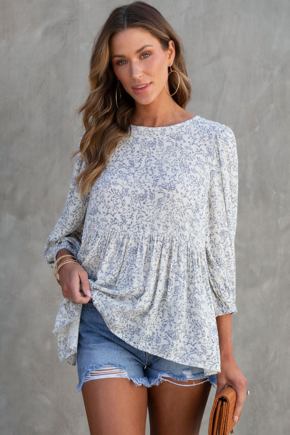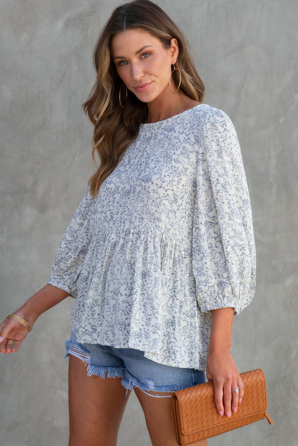 Digital Printing Small Floral Lantern Sleeve Short Sleeve Loose Casual Women's Clothing
