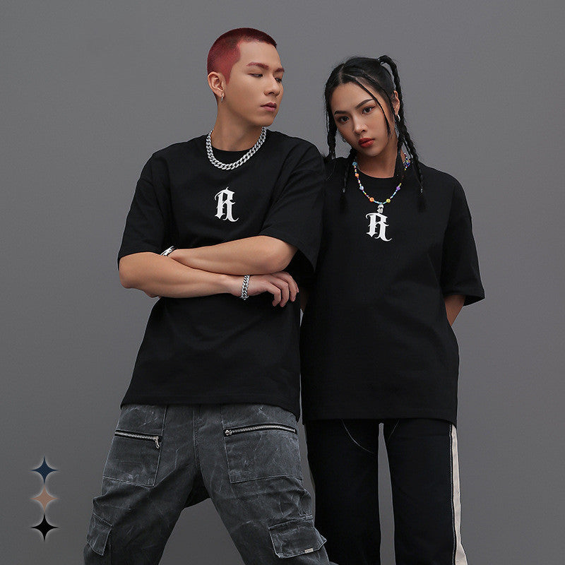 Drop Shoulder Men's And Women's Printed Short Sleeve