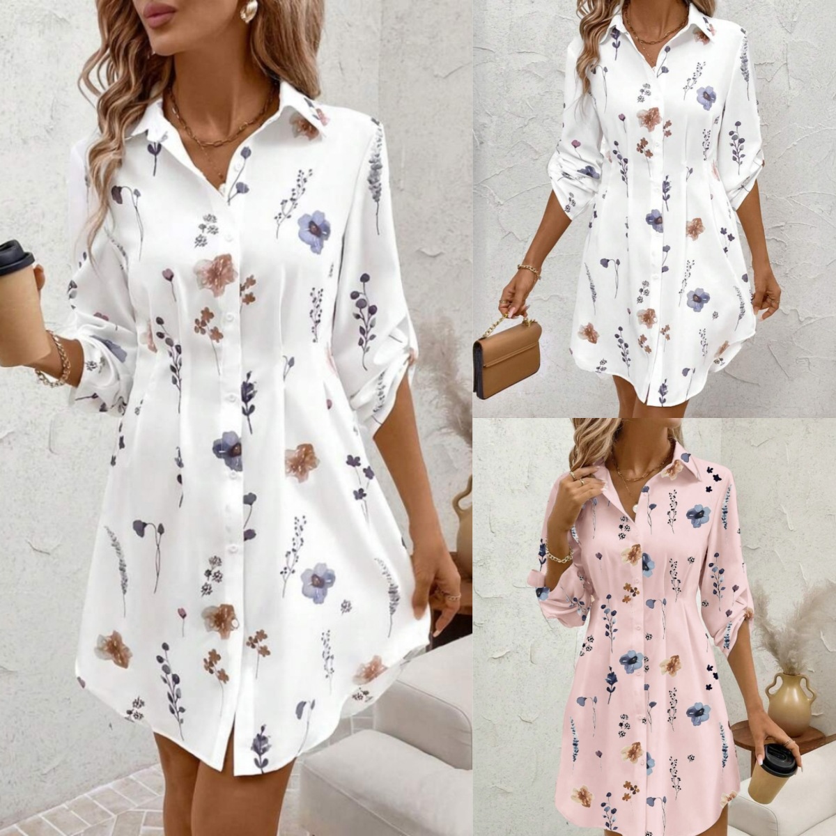 Elegant Floral Printing Lapel Long Sleeve Dress