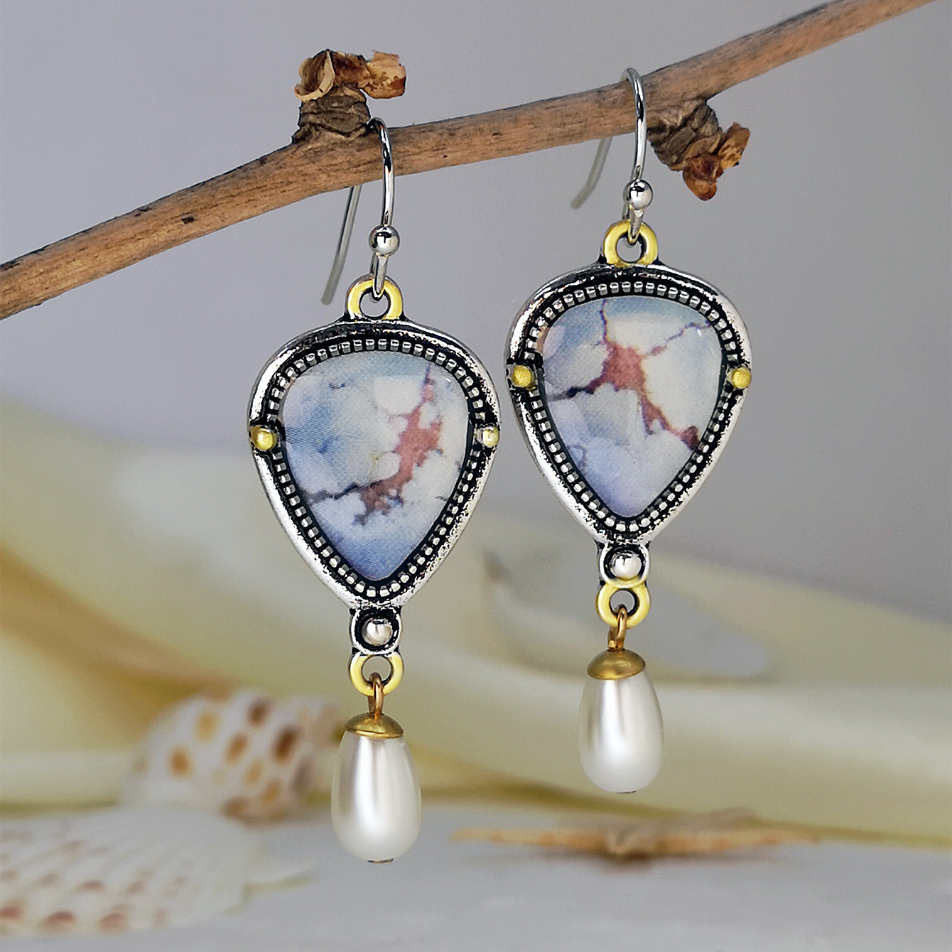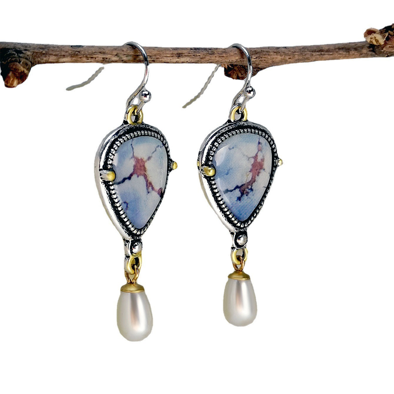 European And American Lavender Turquoise And Pearl Drop Earrings