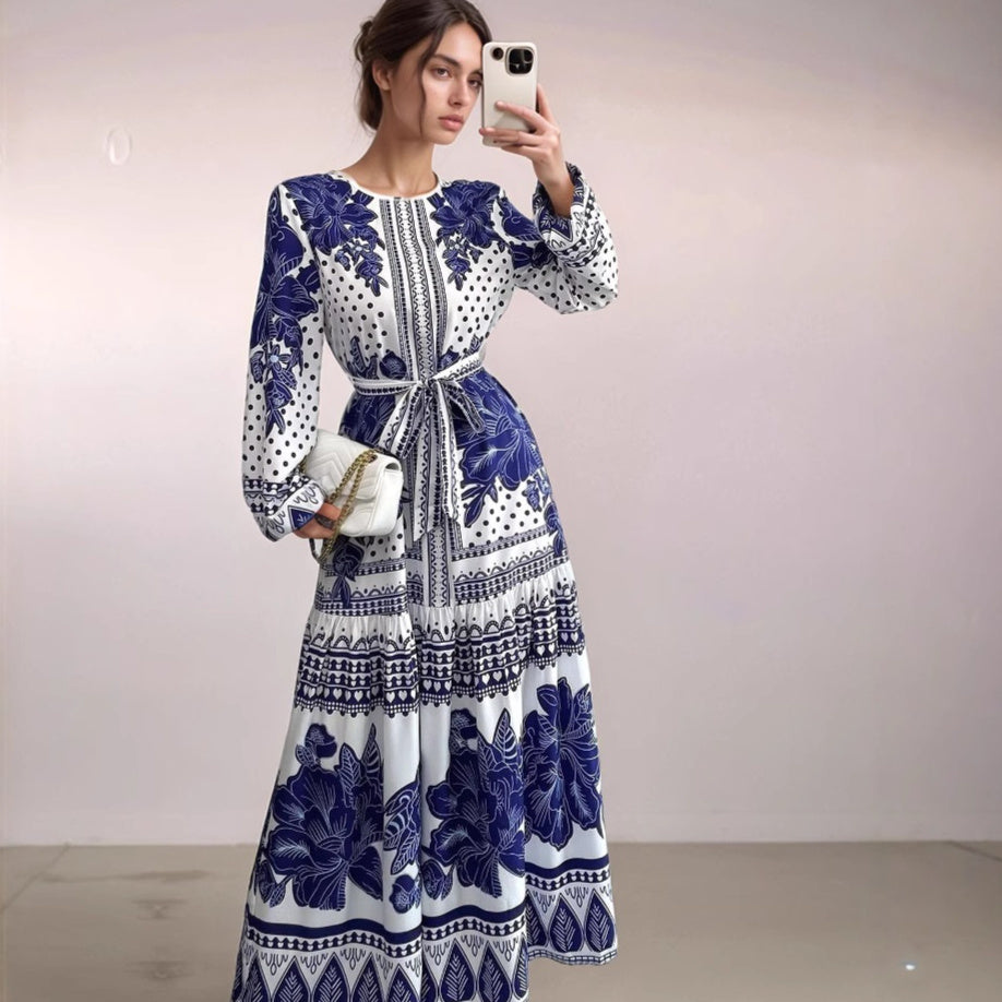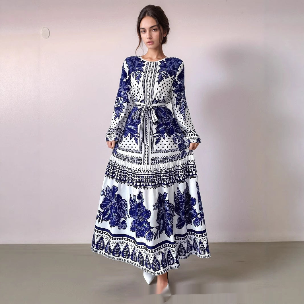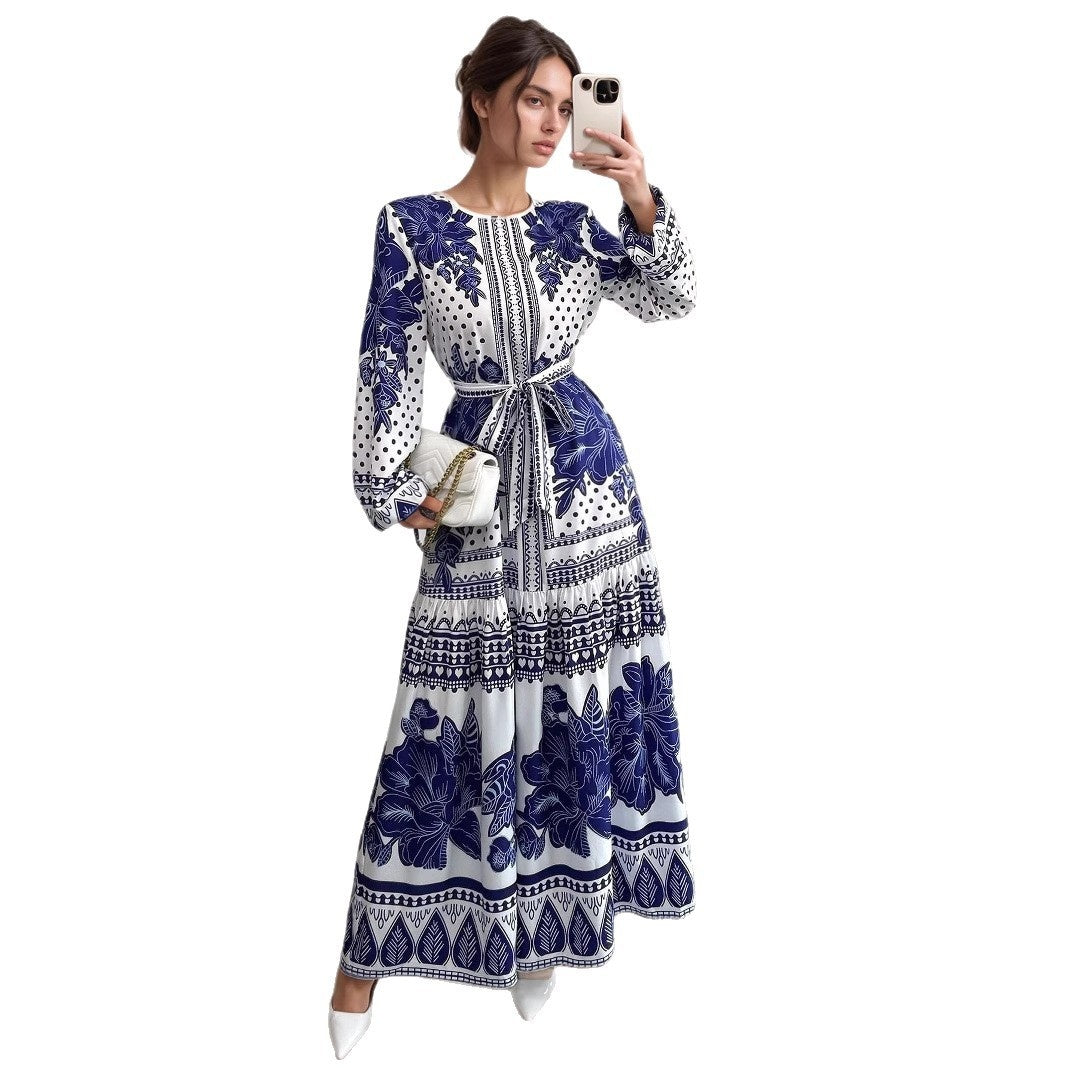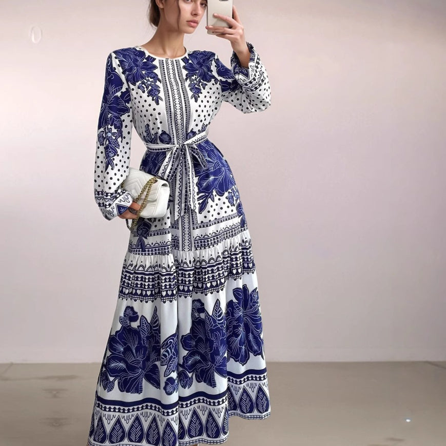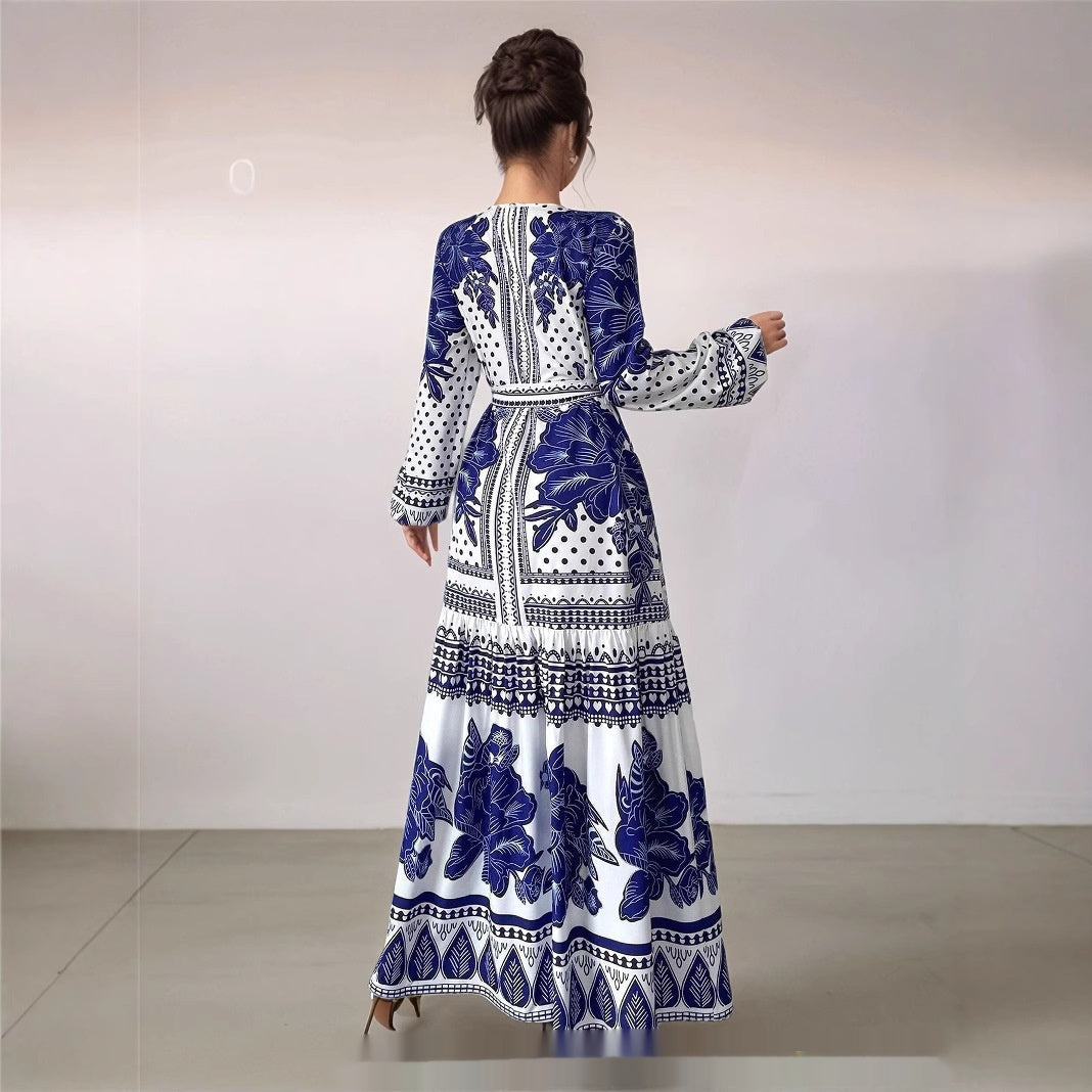 European And American Plus Size Women's Clothes New Printed Long Sleeve Dress