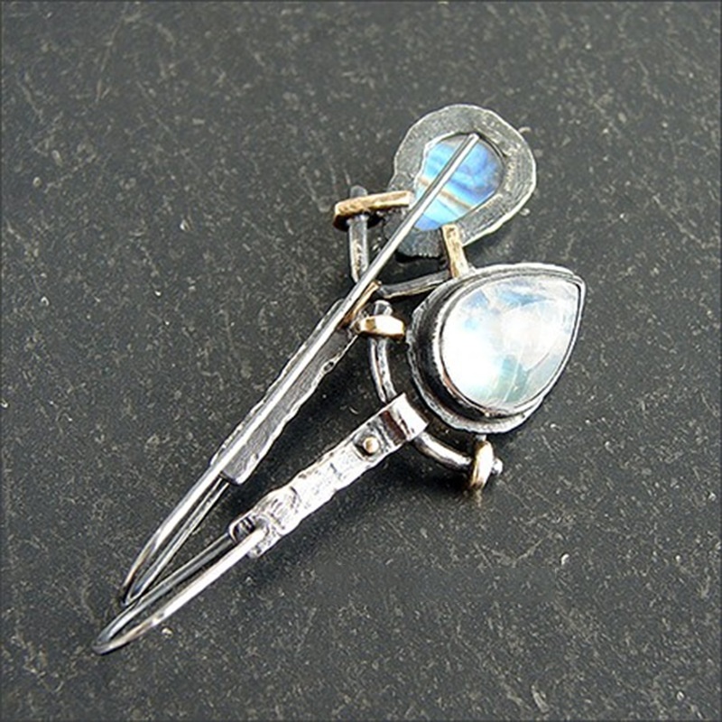 European And American Popular Asymmetric Artistic Retro Water Drop Moonstone Earrings
