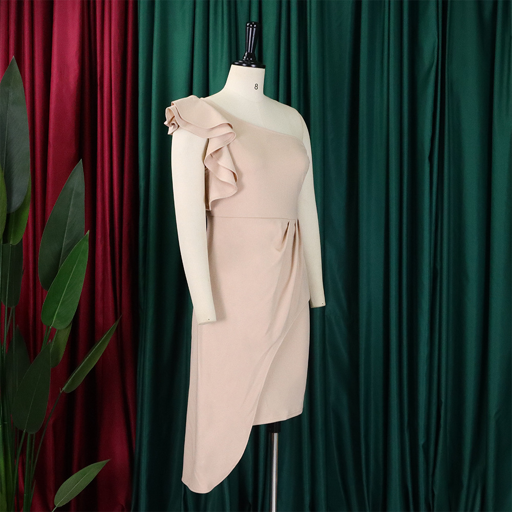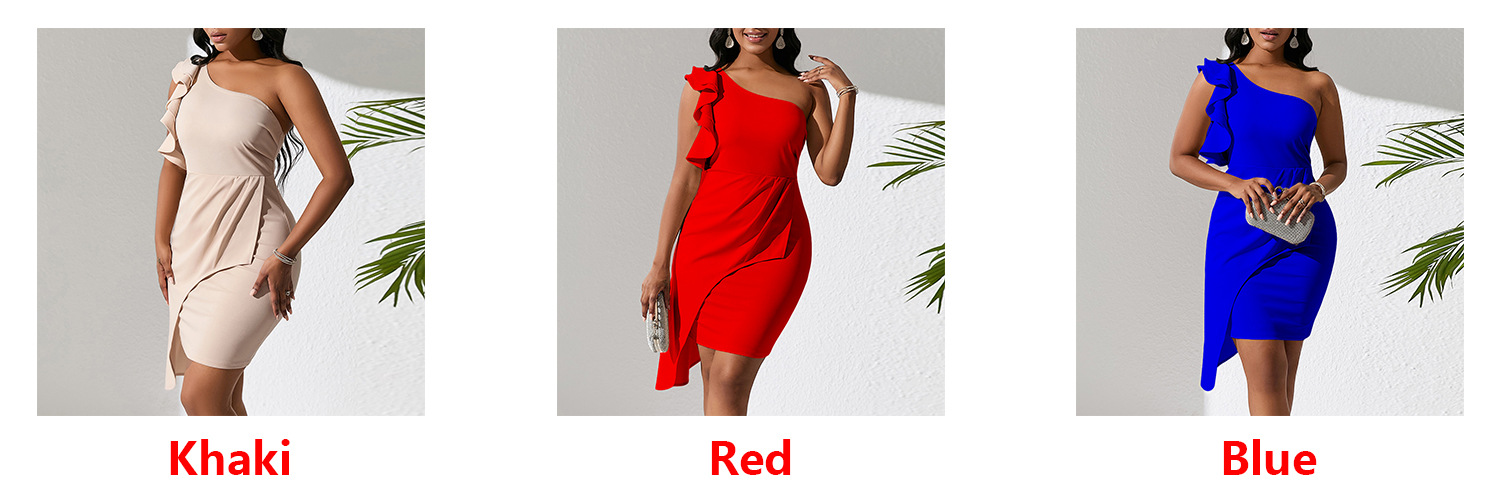 Fashion Diagonal Collar Ruffled Hip-wrapped Temperament Ol Dress