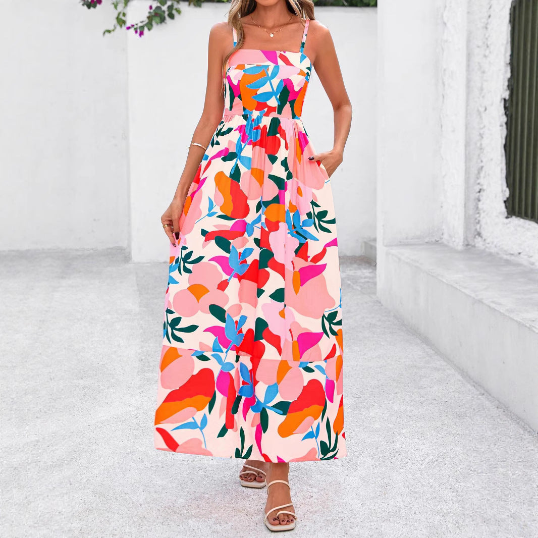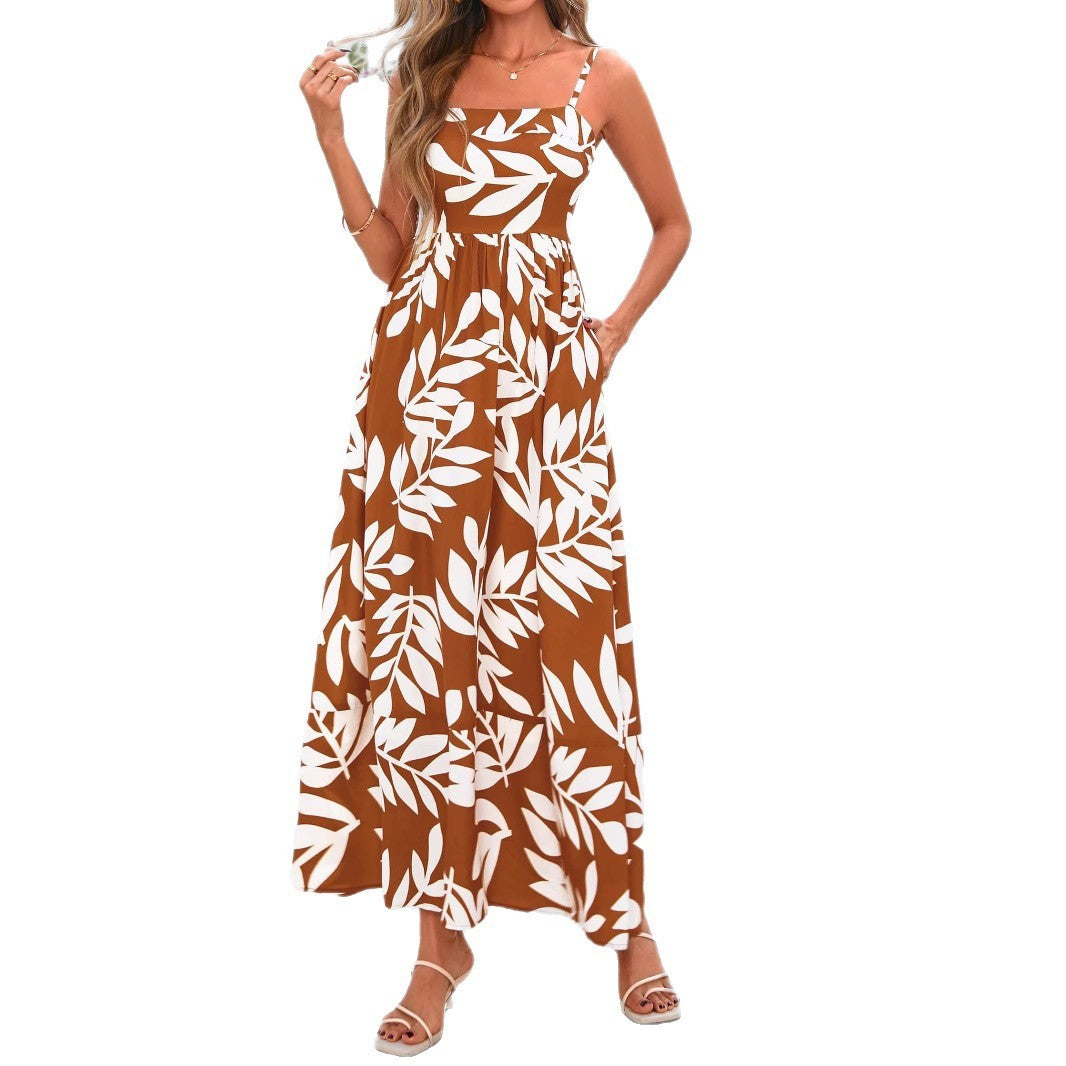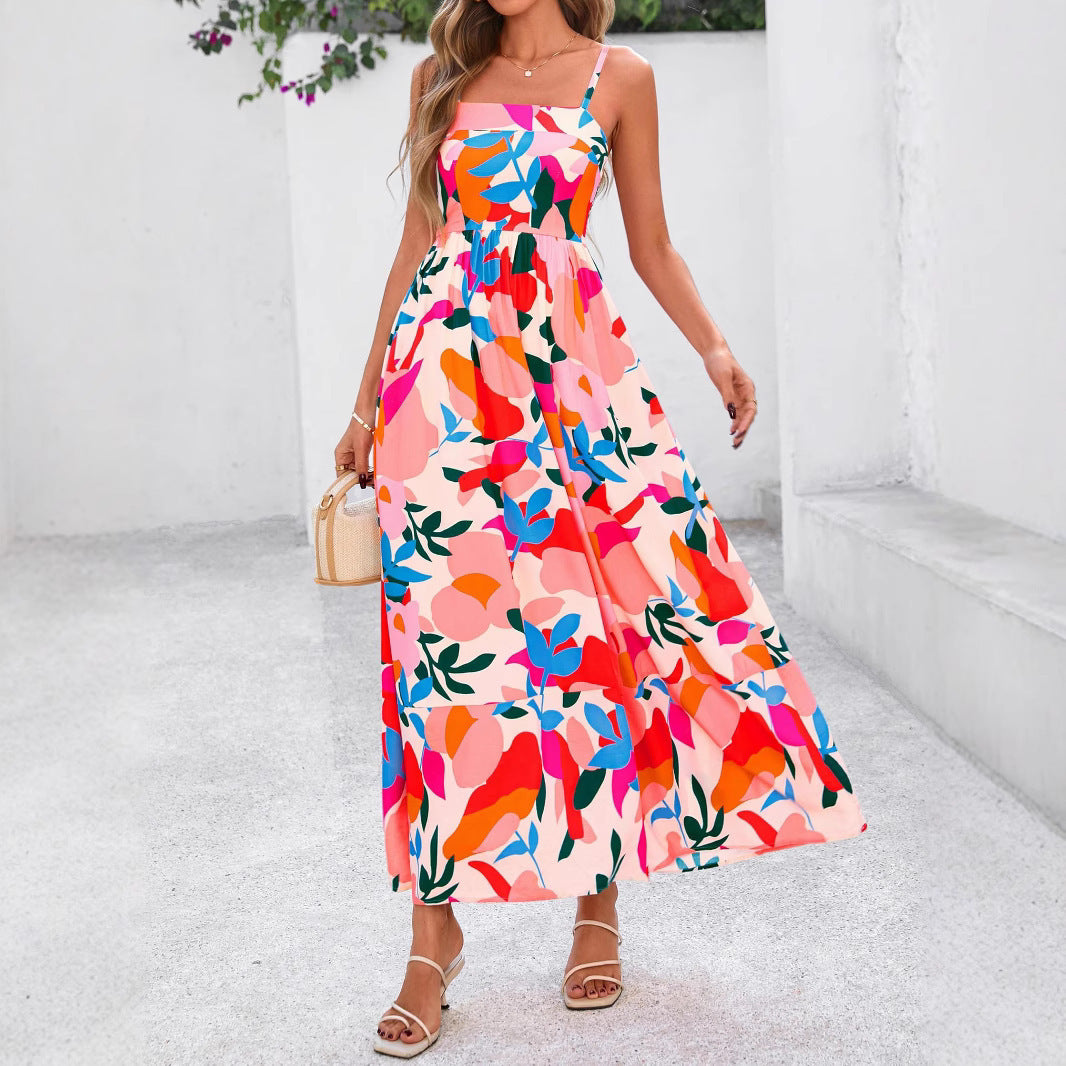 Fashion Lady Striped Spaghetti Straps Backless Dress