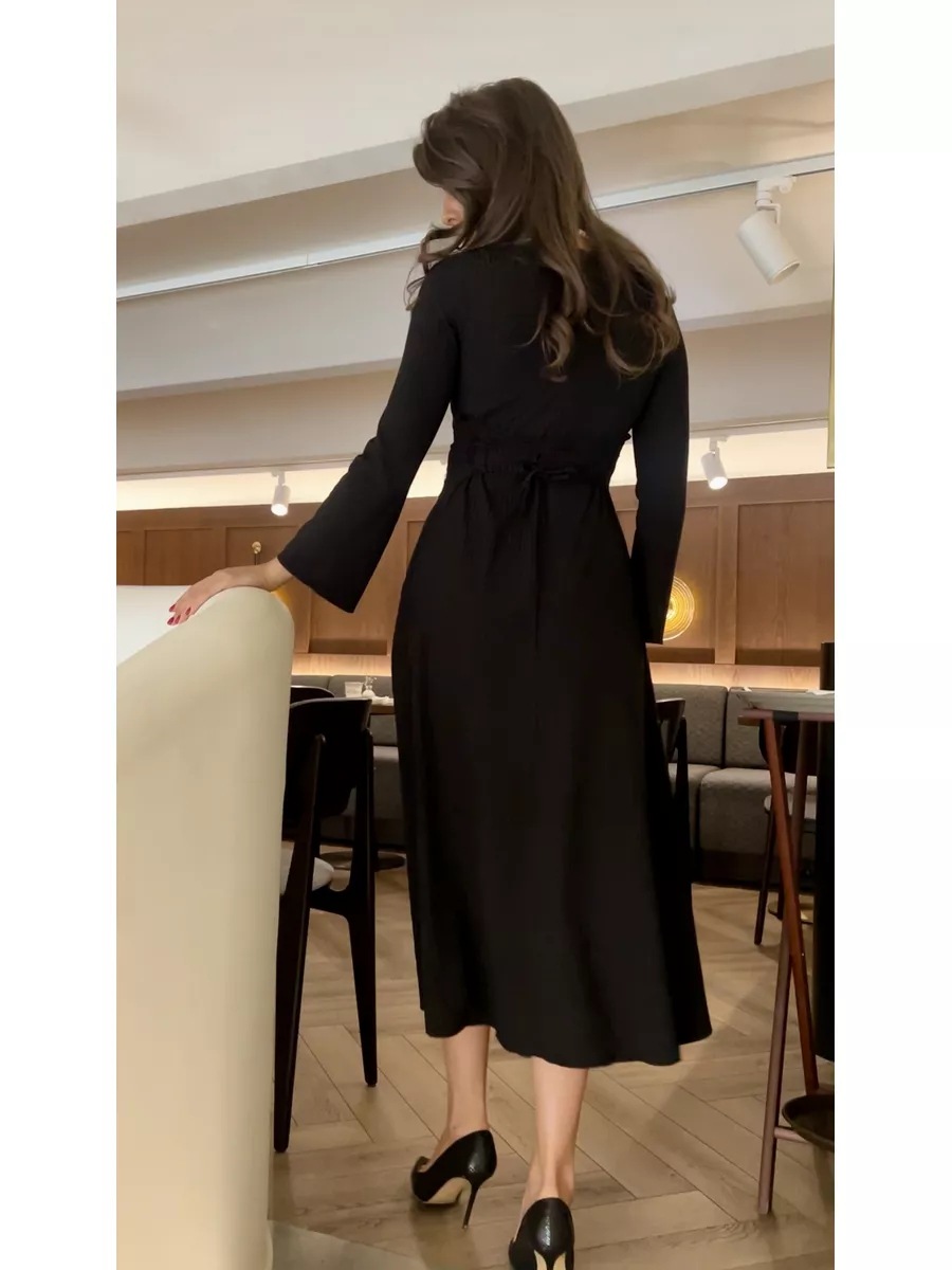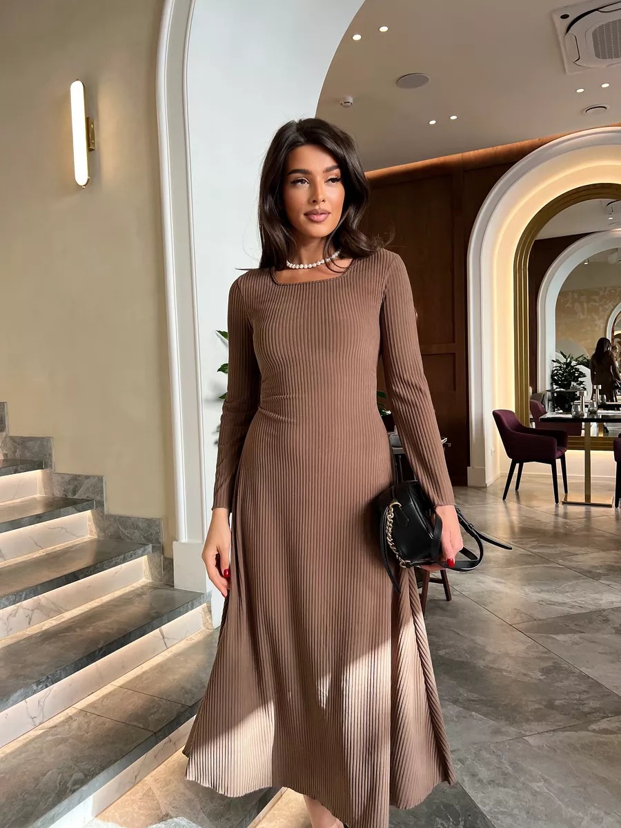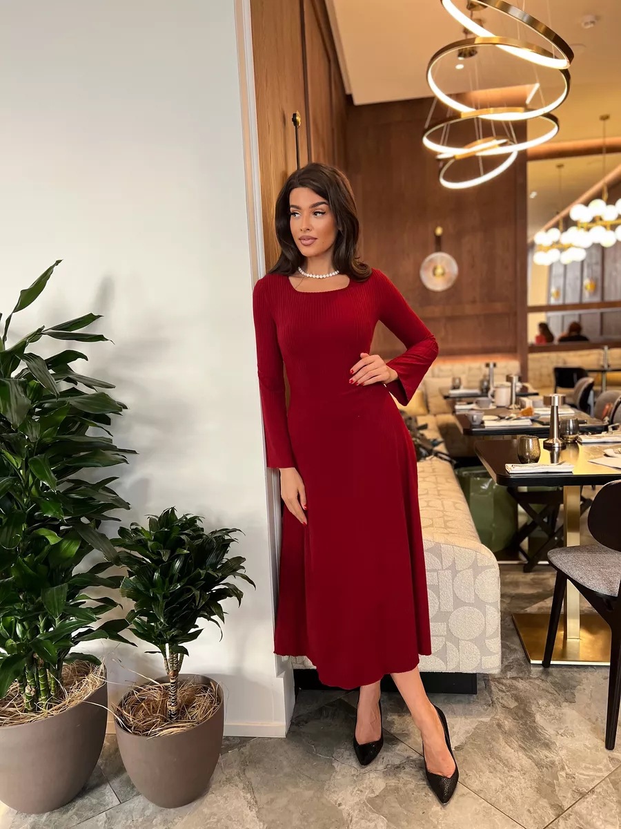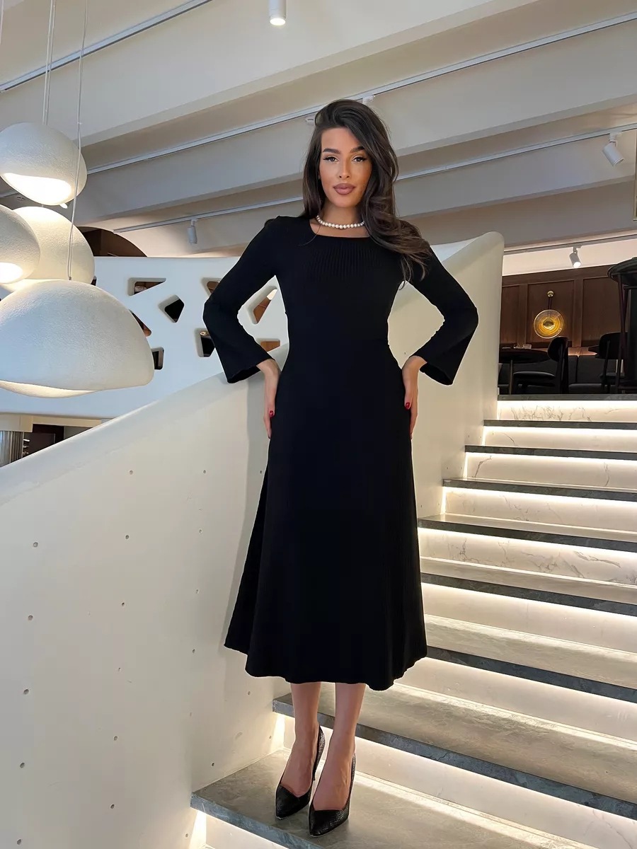 Fashionable Elegant Slim Fit Square Collar Long Sleeve A- Line Dress Women