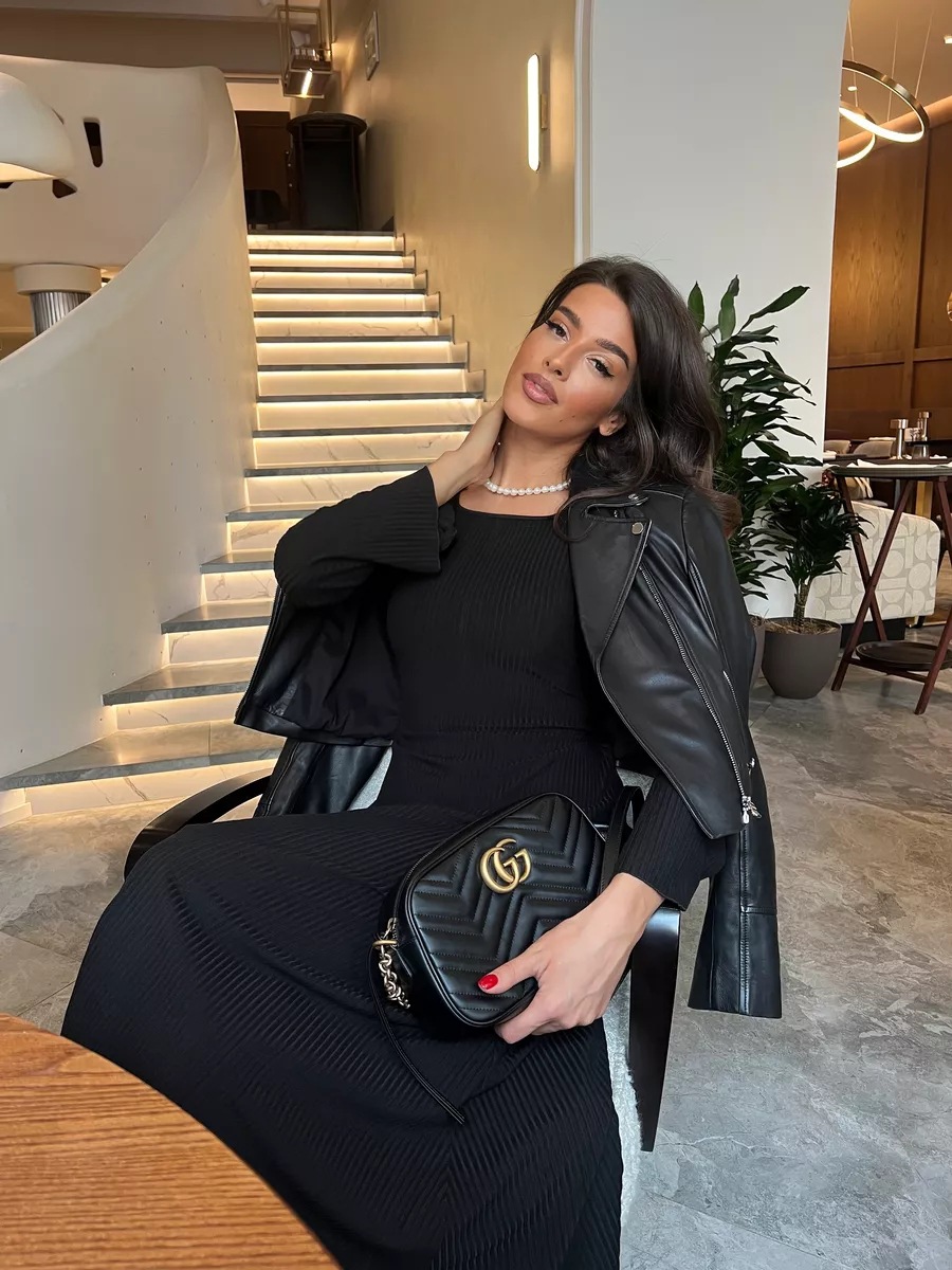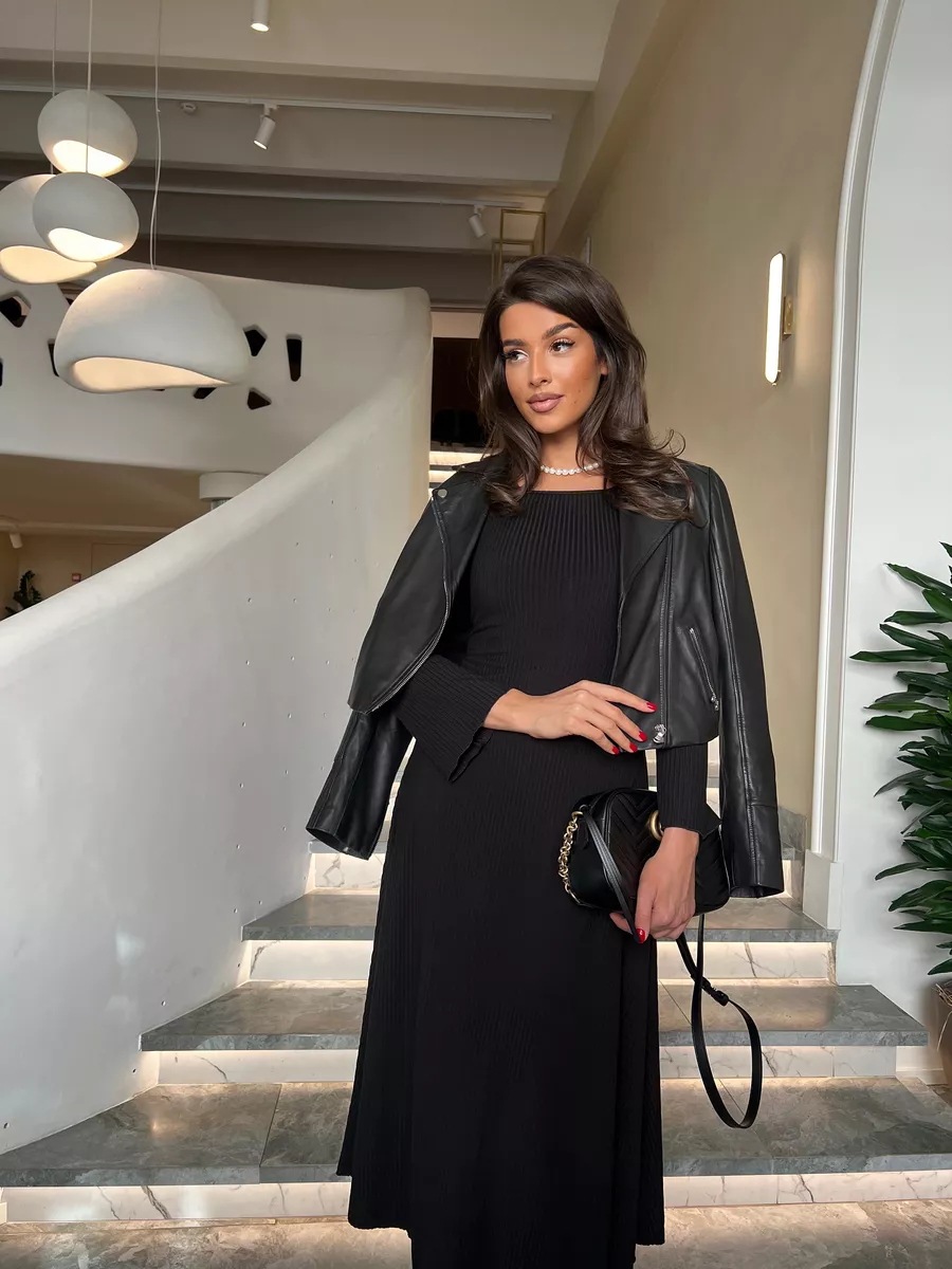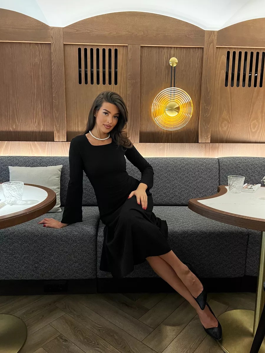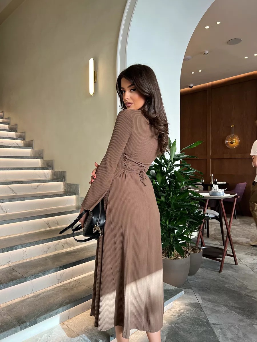 Fashionable Elegant Slim Fit Square Collar Long Sleeve A- Line Dress Women