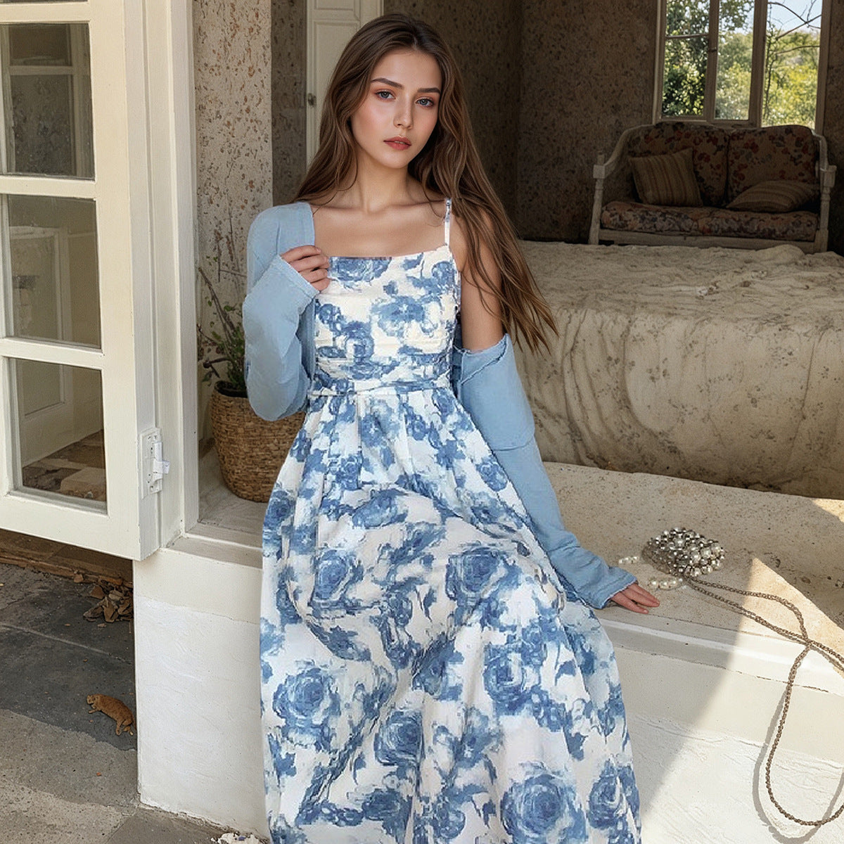 Forest Style Floral Skirt Long Sleeved Cardigan Wool Sweater