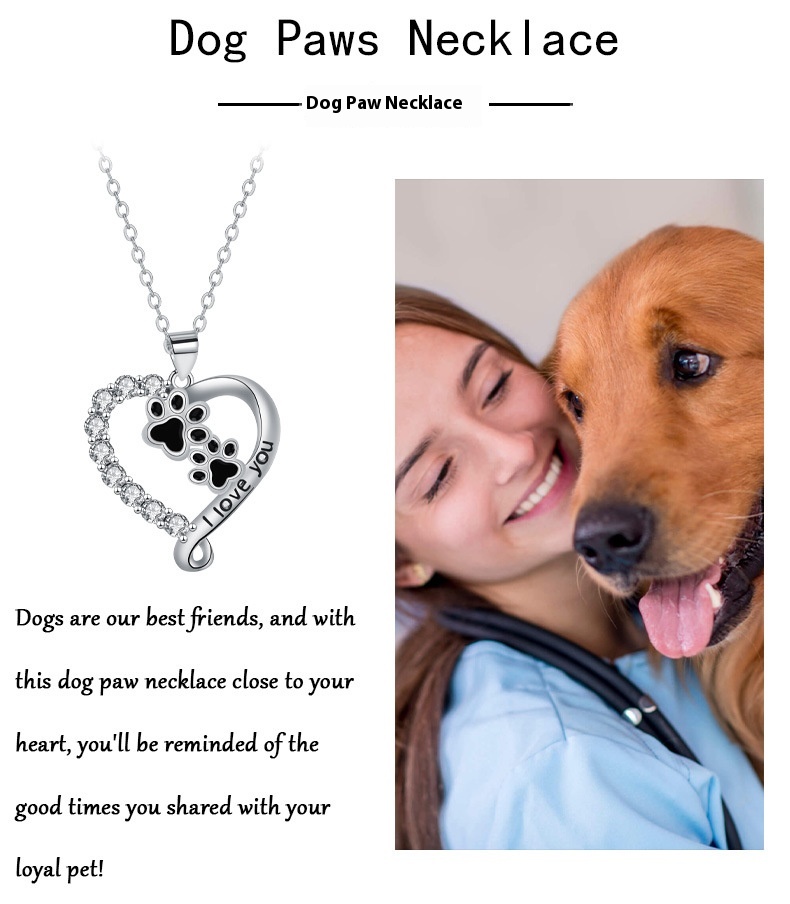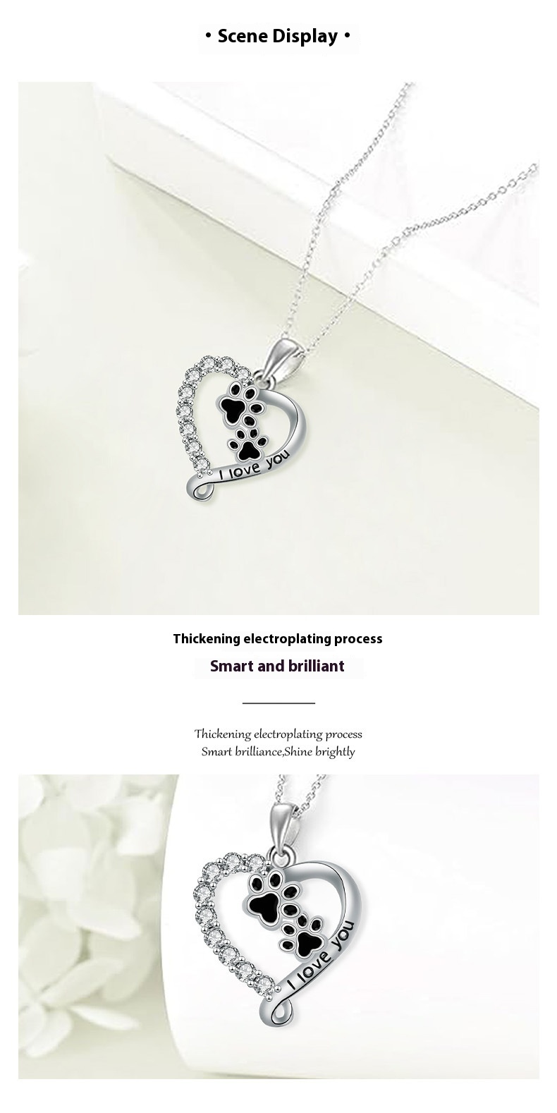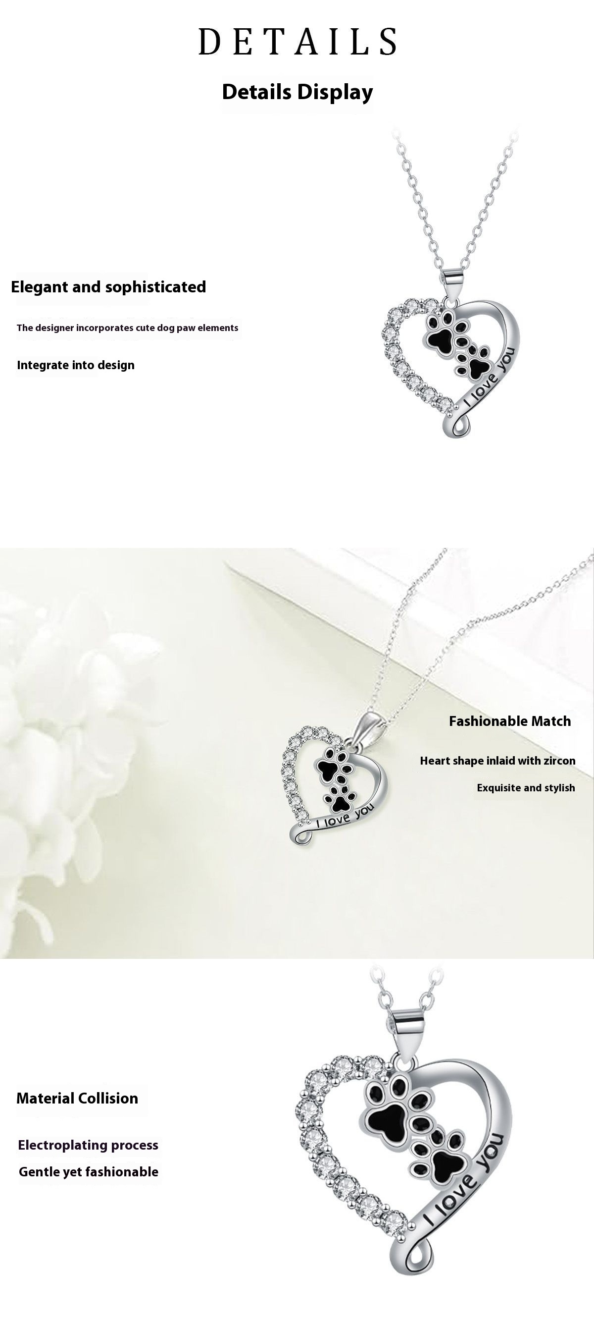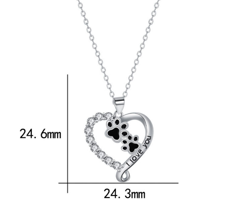Heart-shaped Pendant Cute Dog's Paw Necklace For Women
