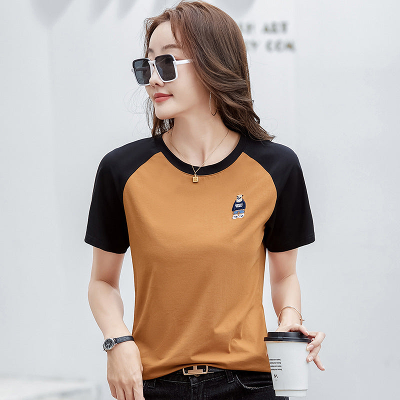 Japanese-style Retro Embroidered Bear Loose T-shirt