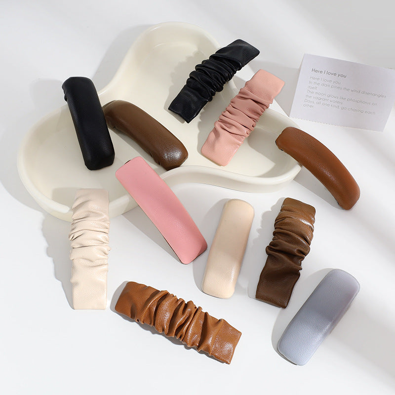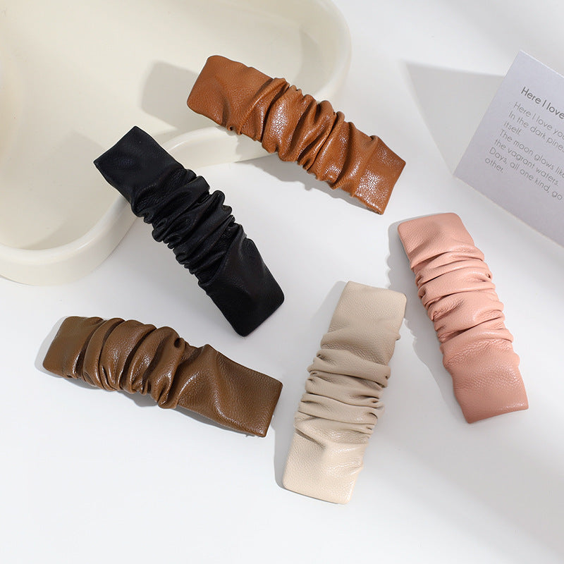 Leather Barrettes Pleated Solid Color Simple Temperamental All-match