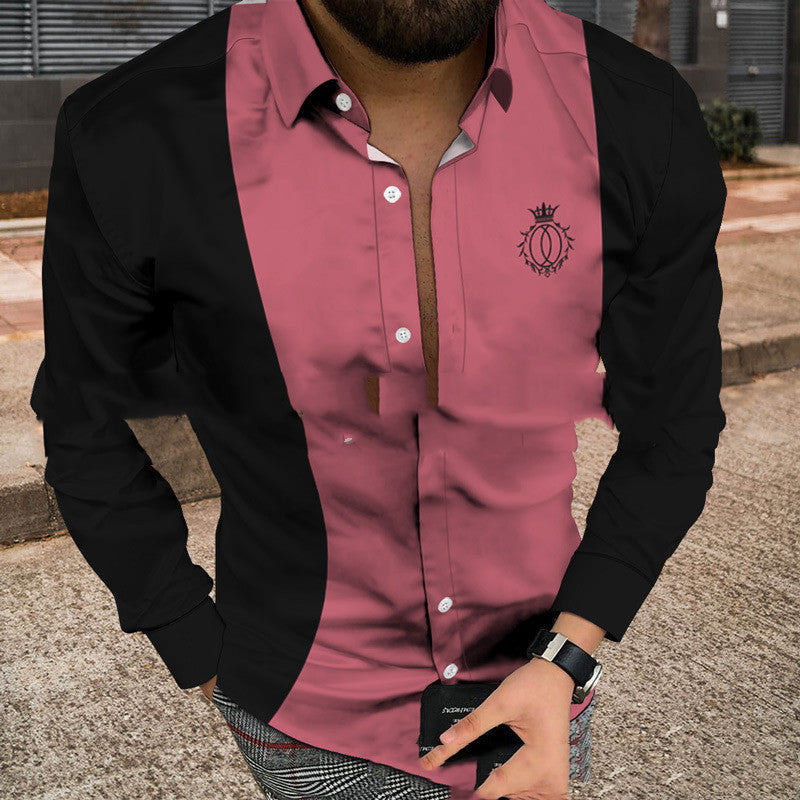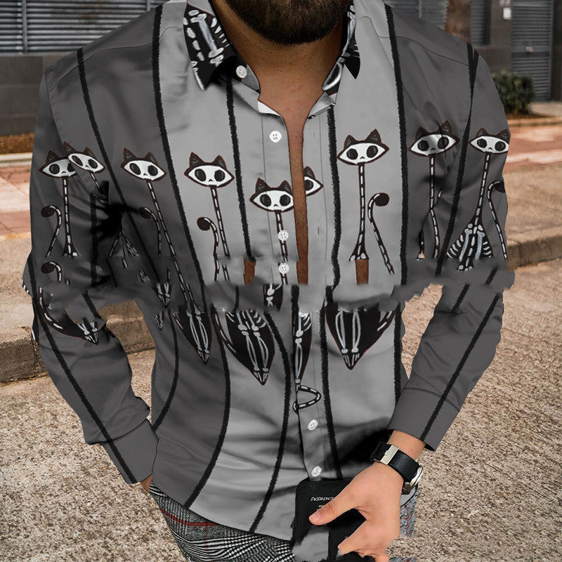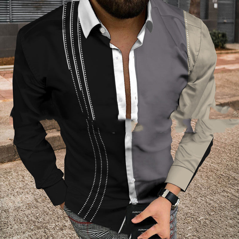 Men's Casual Simple Striped 3D Printed Shirt Long-sleeved Bottoming Shirt