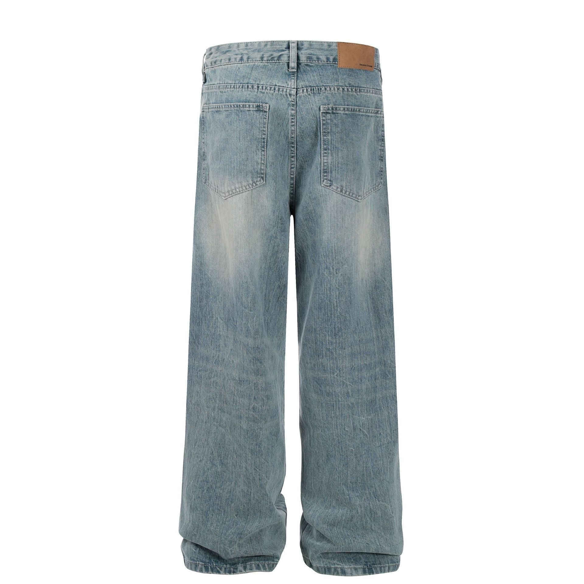 Men's High-grade Washed Blue Deconstructive Design Loose Jeans
