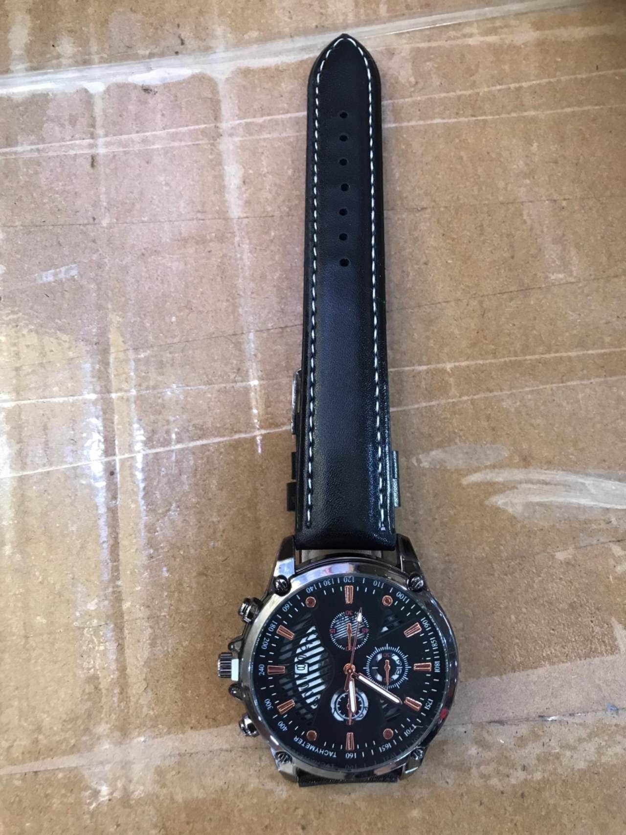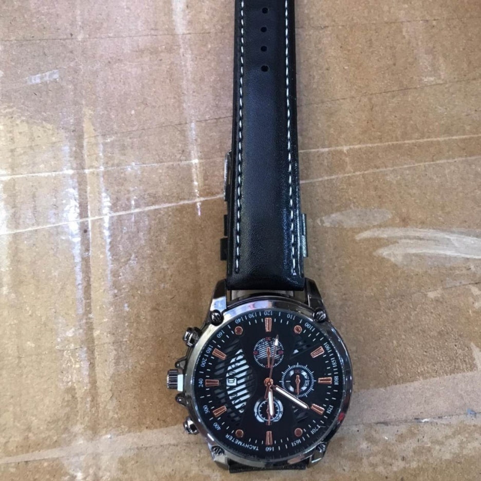 Men's Leather Strap Sports Pointer Quartz Watch