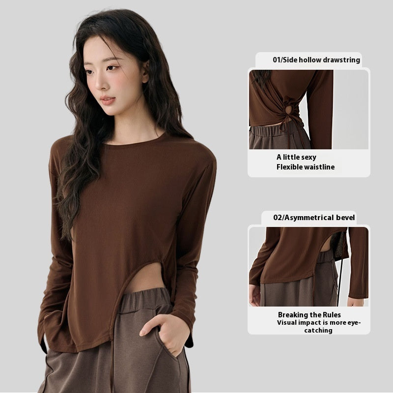 Modal Side Sexy Cutout Drawstring Loose Breathable Pilates Sports Blouse