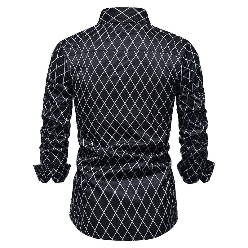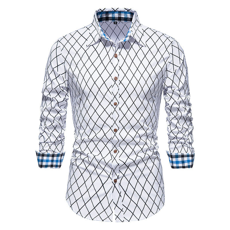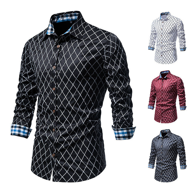New Fashion Contrast Color Men's Long-sleeved Diamond Check Button Shirt