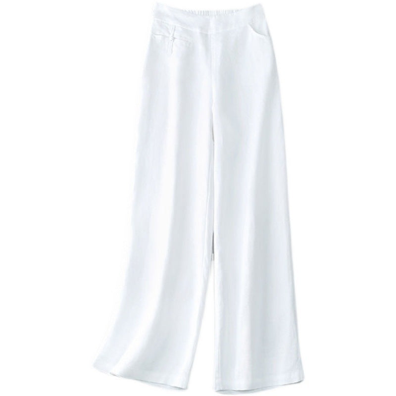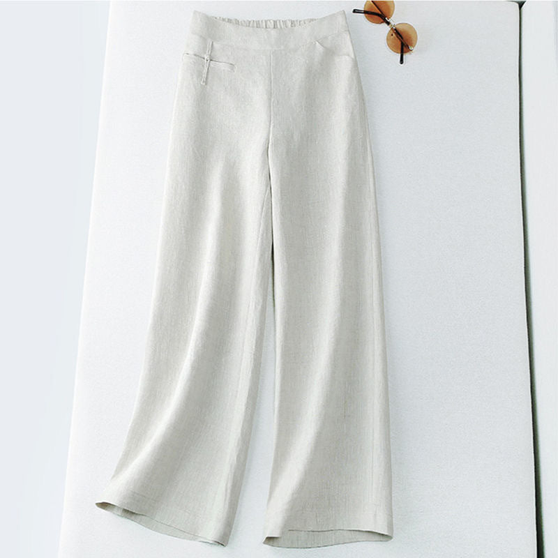 New Half Elastic High Belt Buckle Slimming Casual Cotton Linen Wide Leg Pants