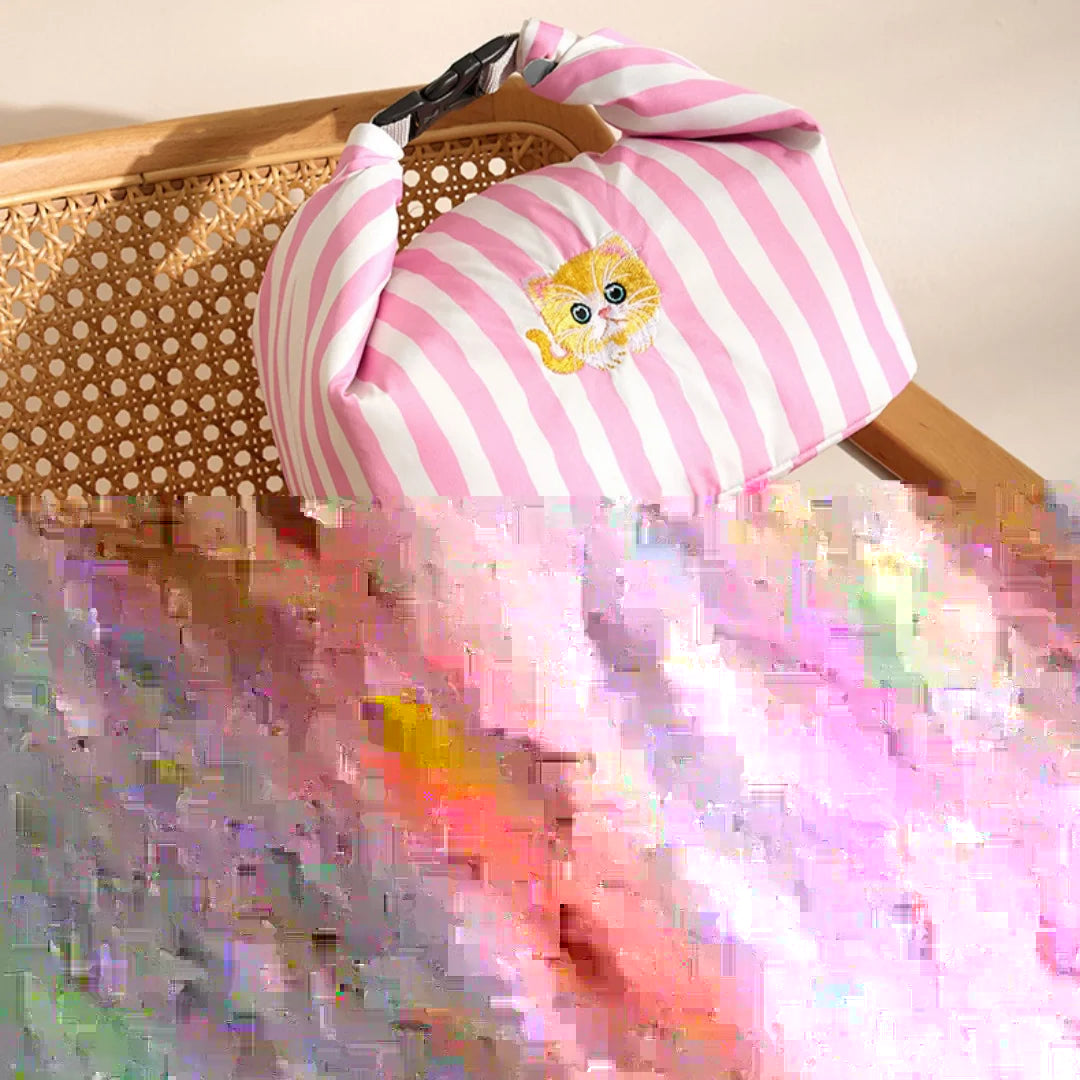 New Pink Striped Strawberry Cat Insulated Cute Lunch Handbag Large Capacity Folding Roll Bento Bag Picnic Food Fresh Cooler Bag