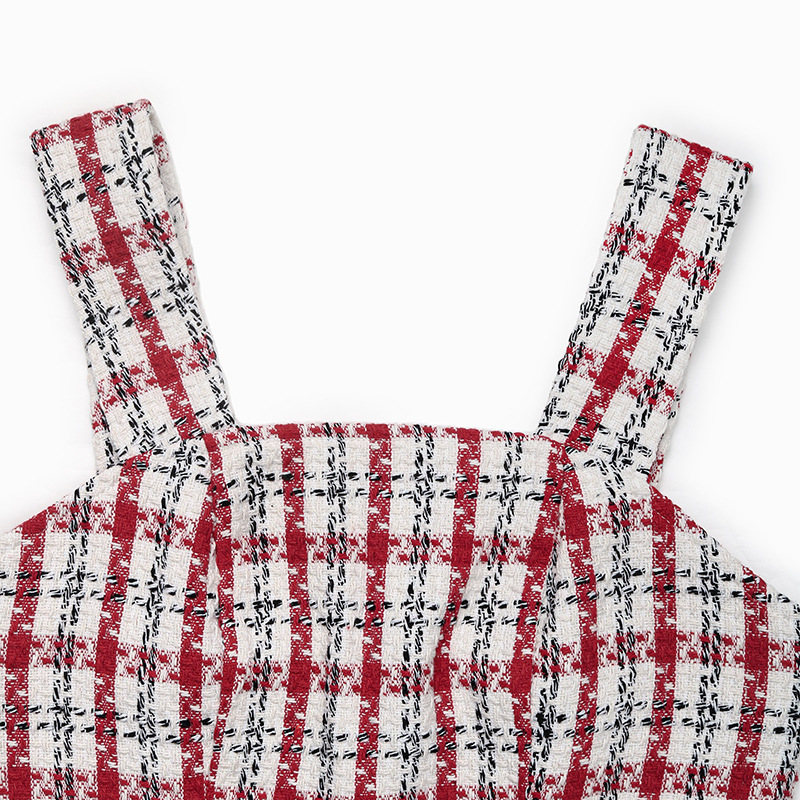 Plaid Woolen Dress Slimming Suspenders Short Skirt For Women