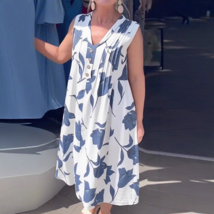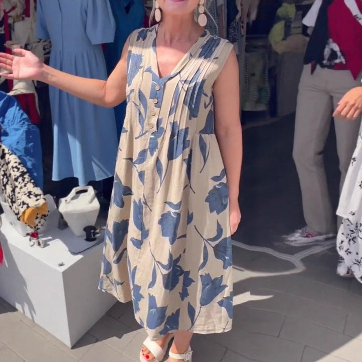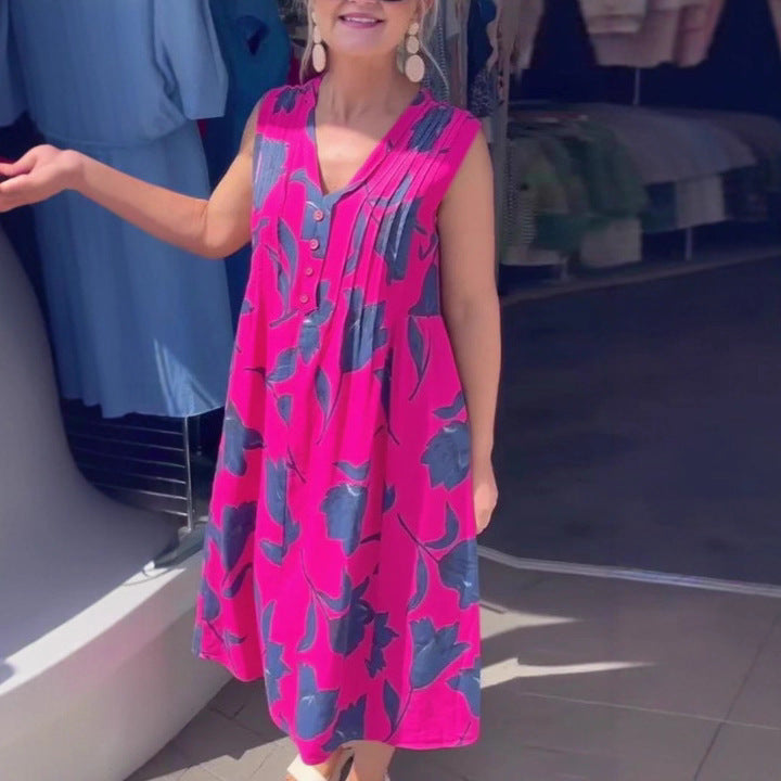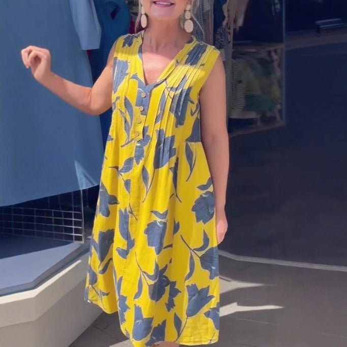 Plus Size Women's Blouse Solid Color Pocket Sleeveless Dress