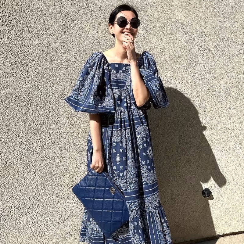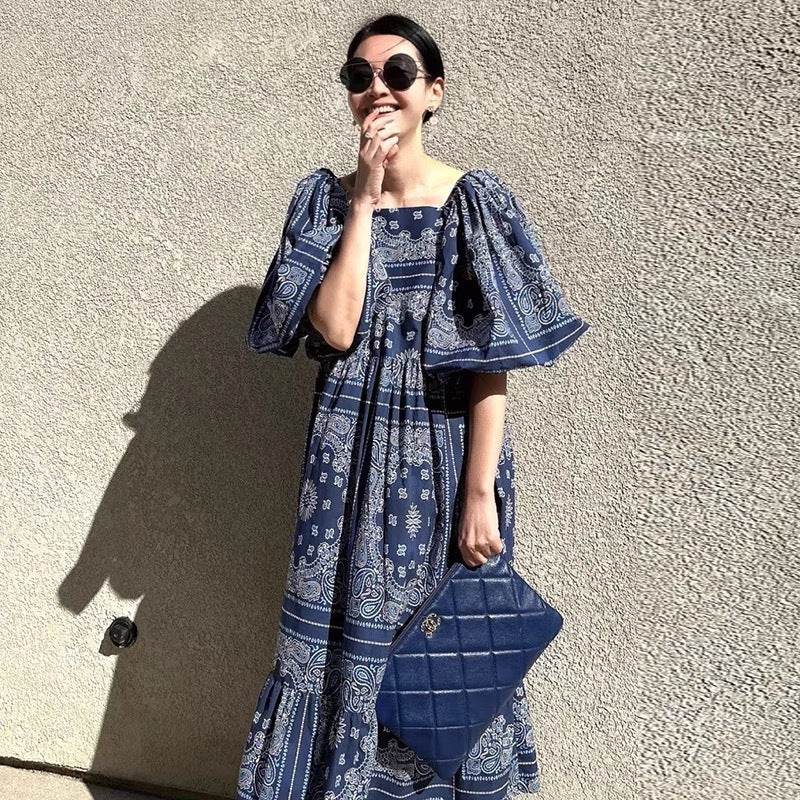 Printed Loose Casual Puff Sleeve Dress