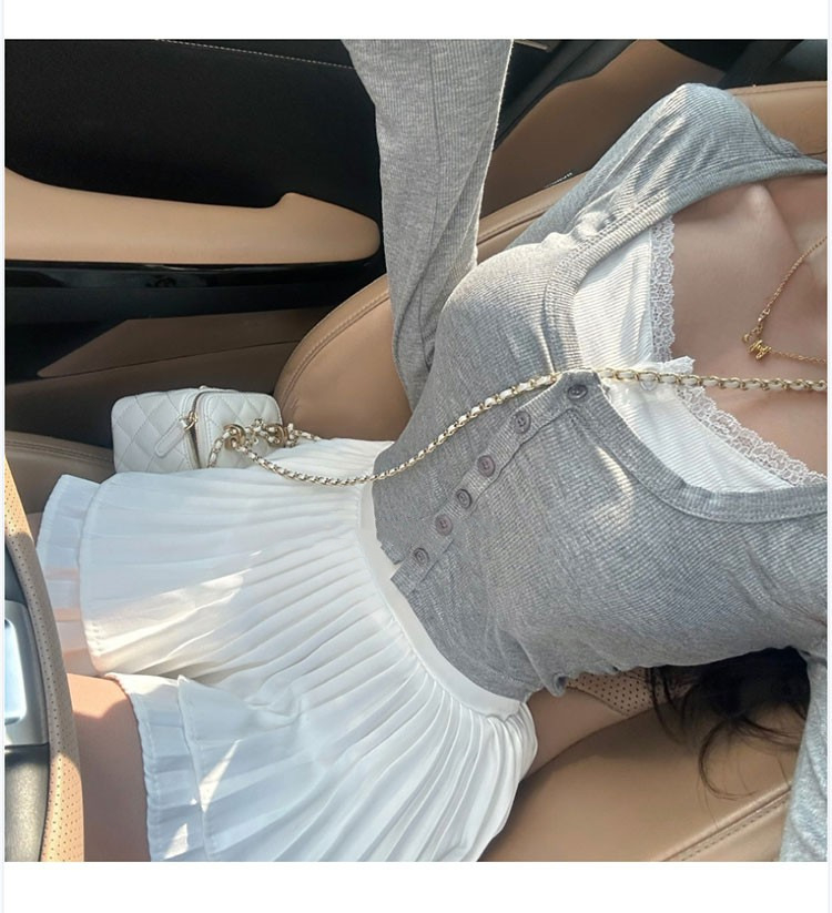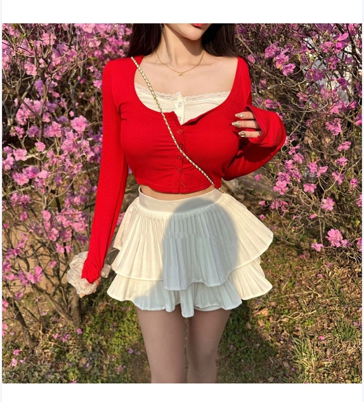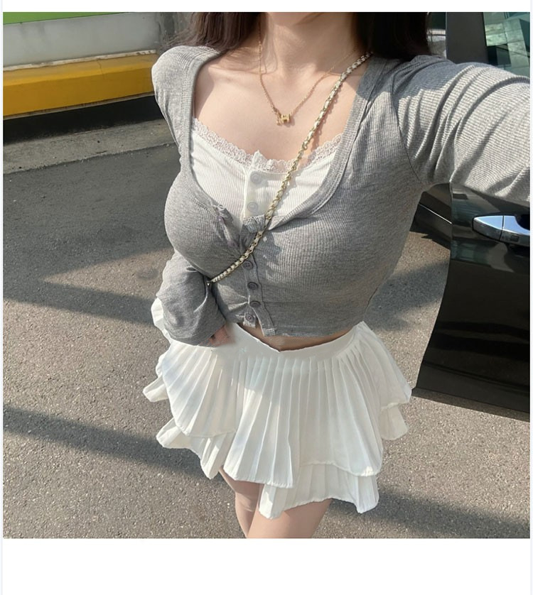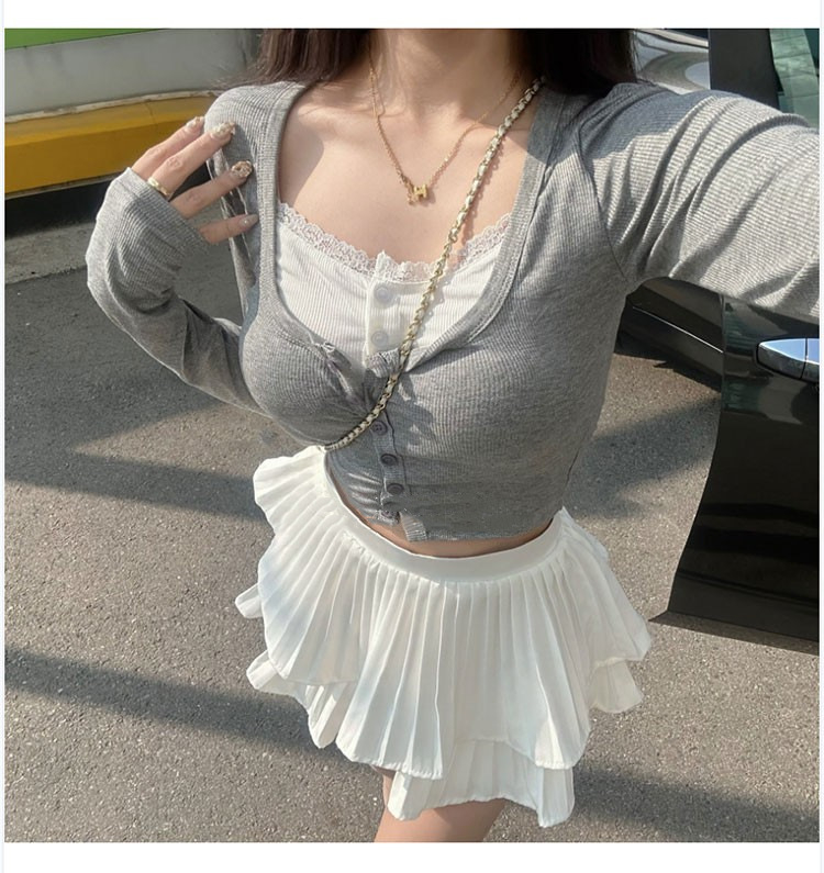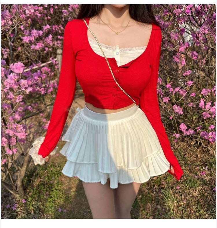 Pure Desire Lace Fake Two-piece Buttoned Bottoming Shirt
