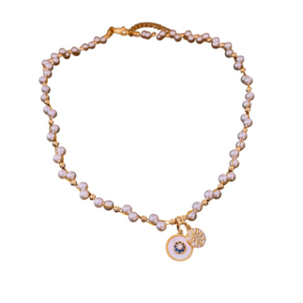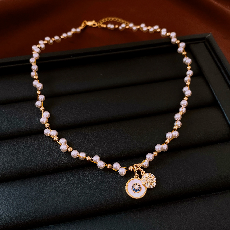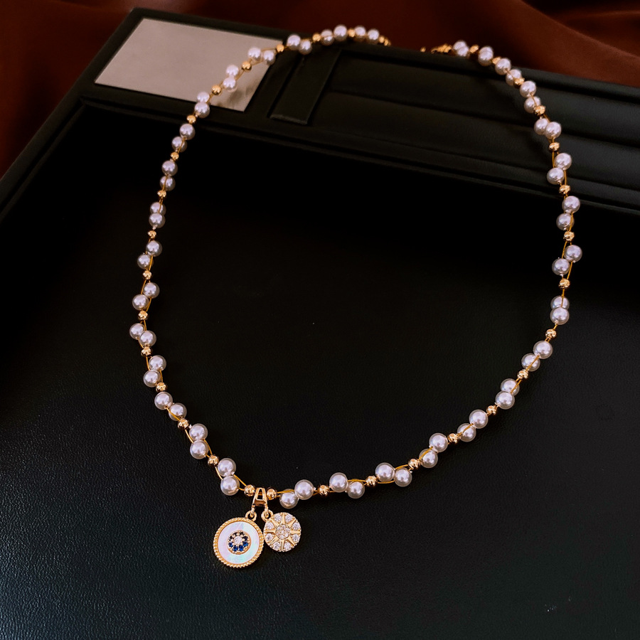 Real Gold Electroplated Zircon Pearl Round Pendant Necklace Light Luxury Clavicle Chain