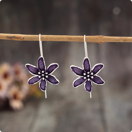 Retro Purple Flower Temperament Alloy Simple Earrings