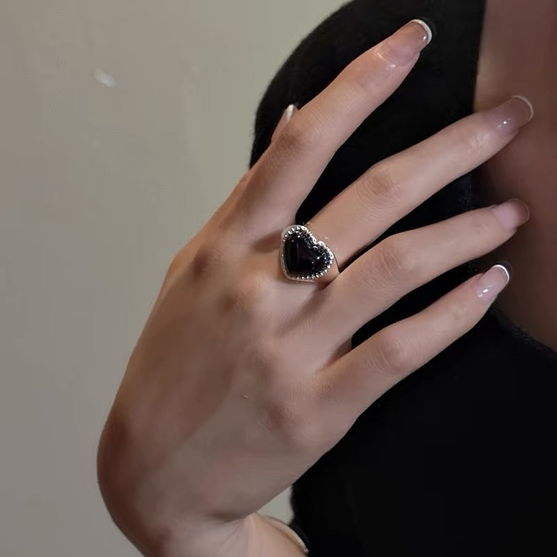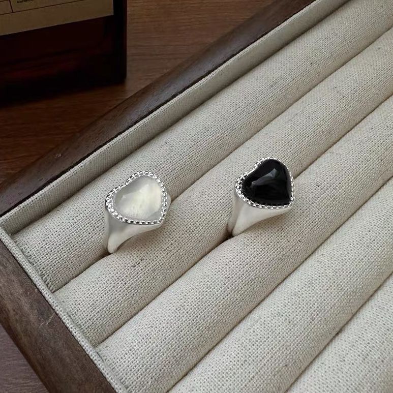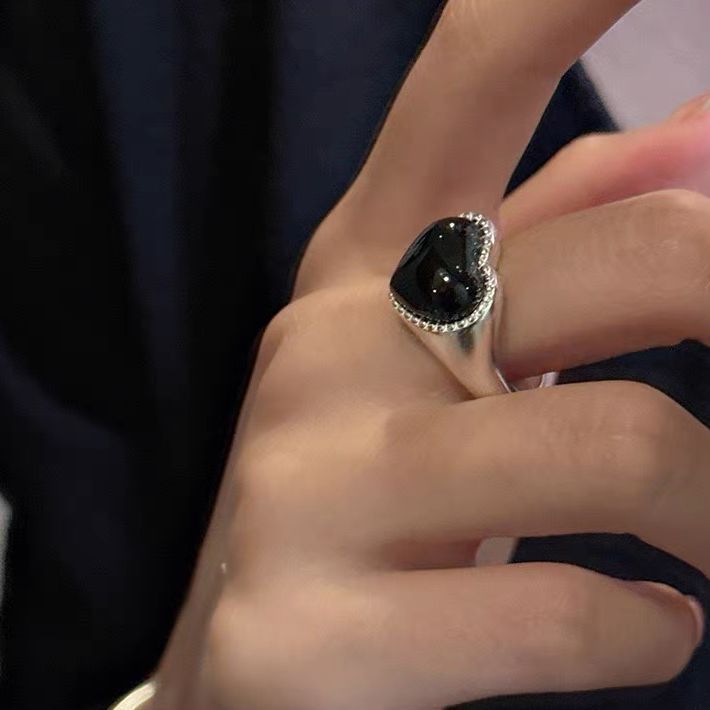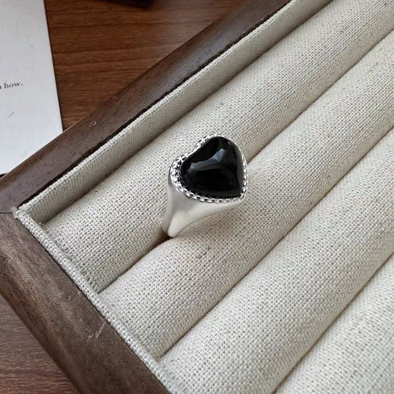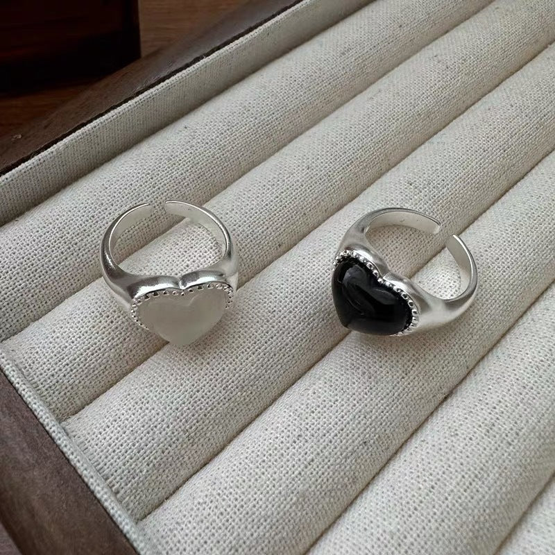 S925 Sterling Silver Niche Design Heart Agate Ring