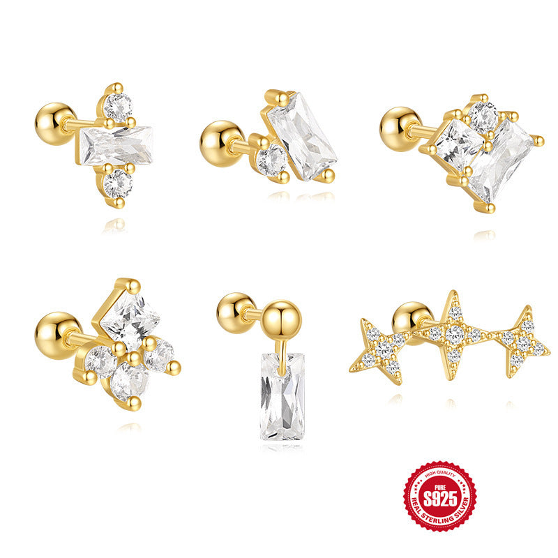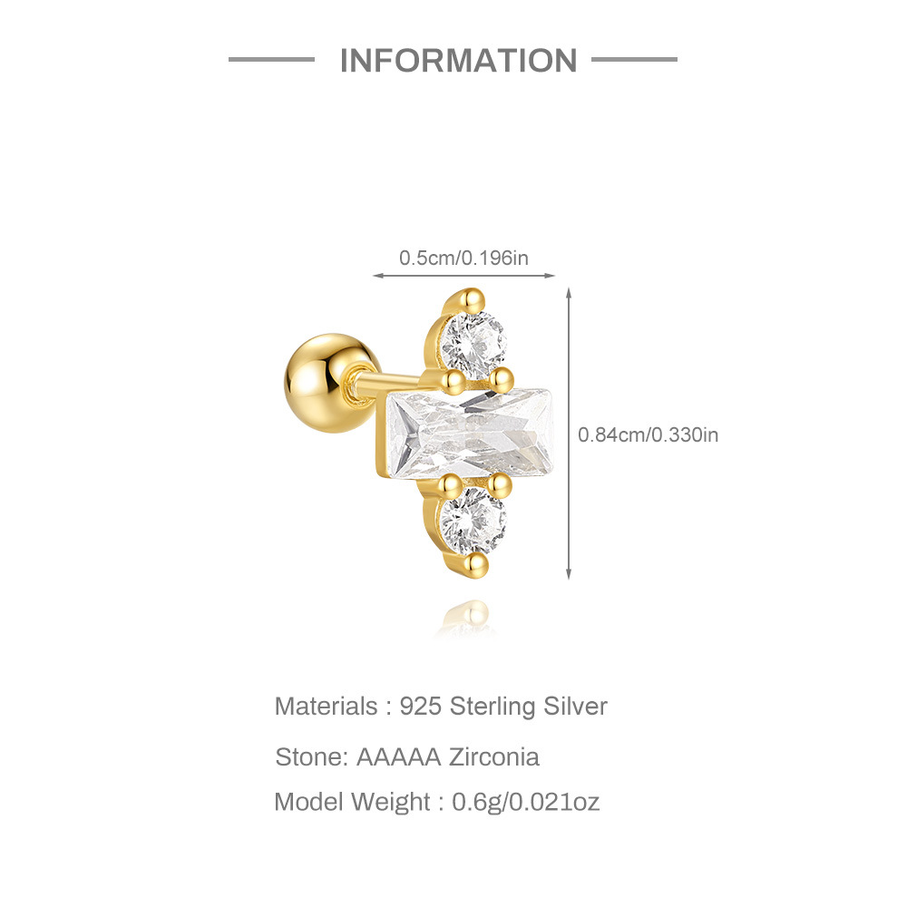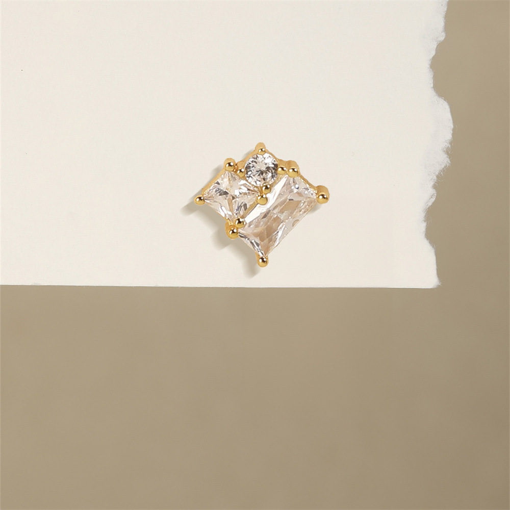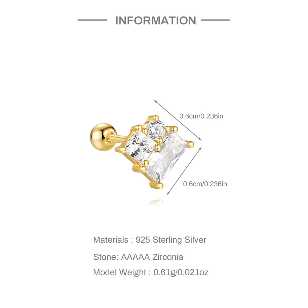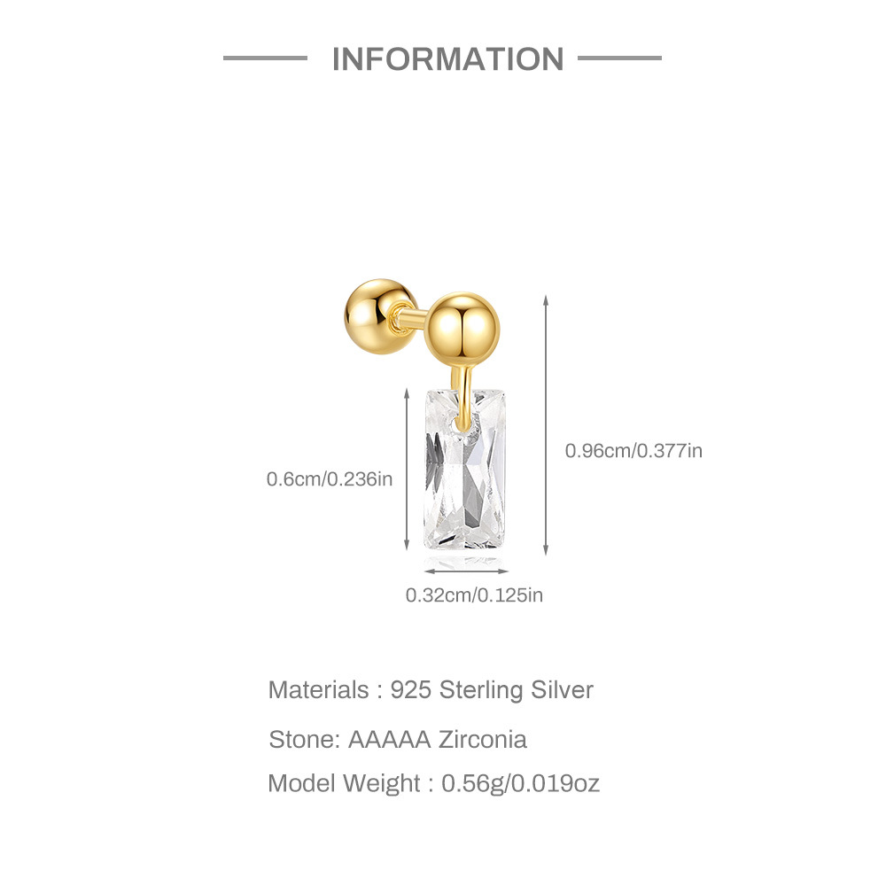 S925 Sterling Silver Red Earrings Square Gravel Stud Earrings