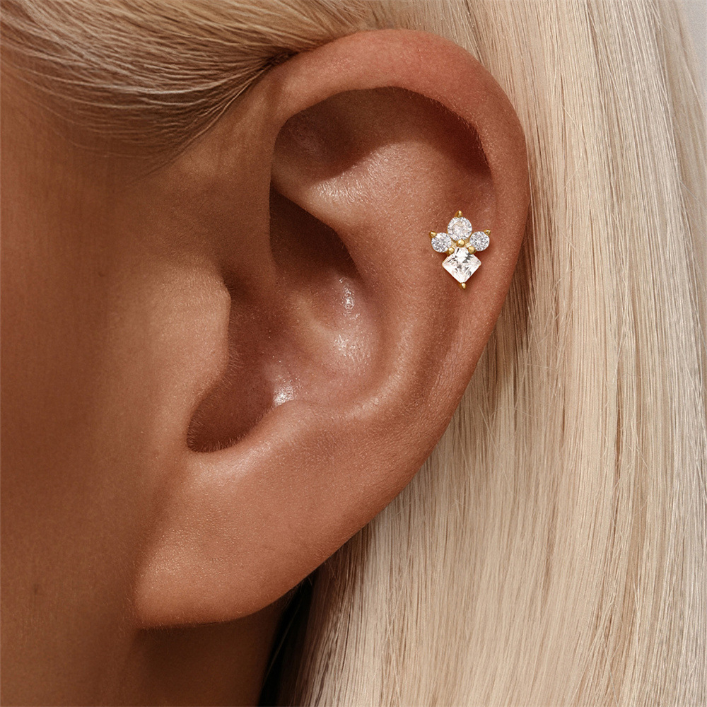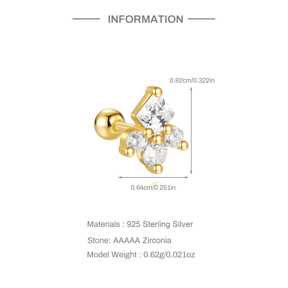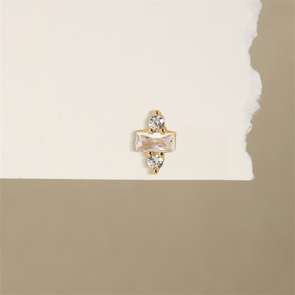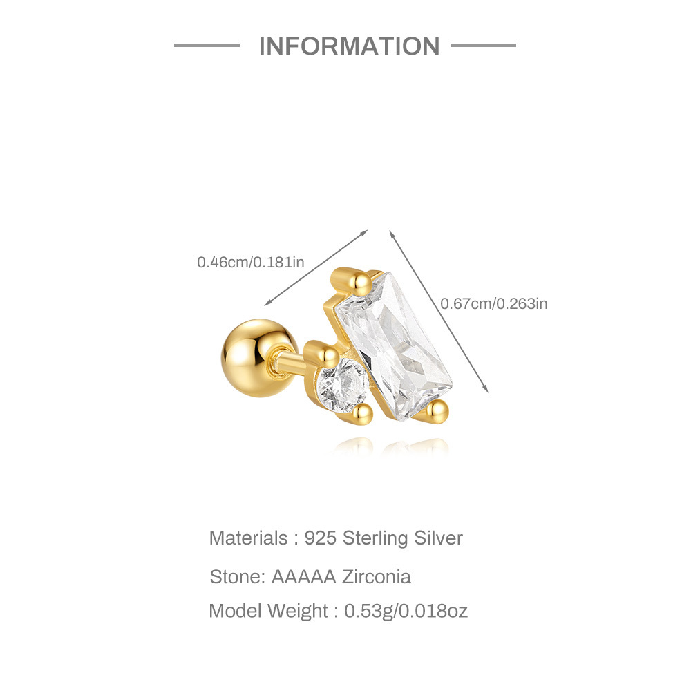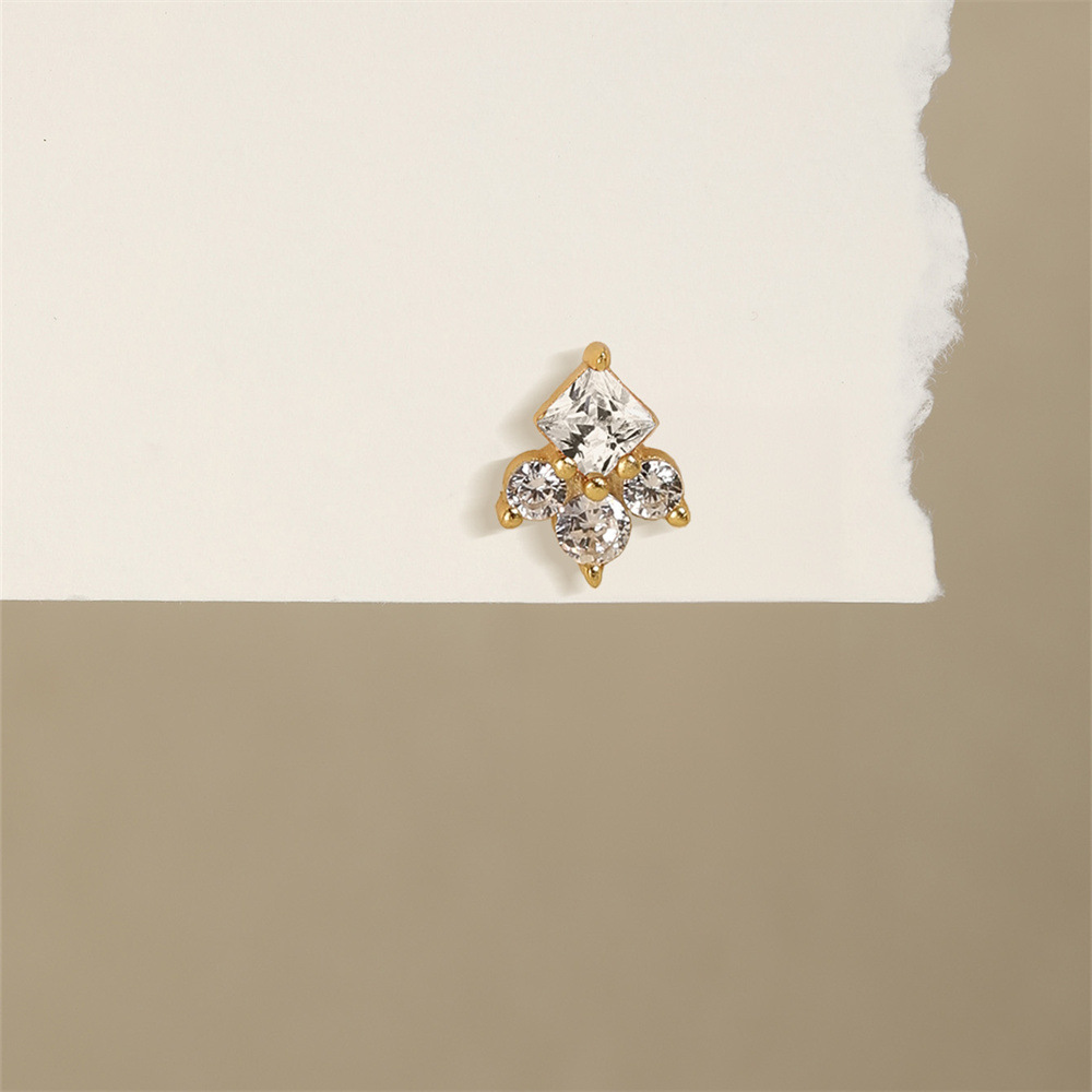 S925 Sterling Silver Red Earrings Square Gravel Stud Earrings