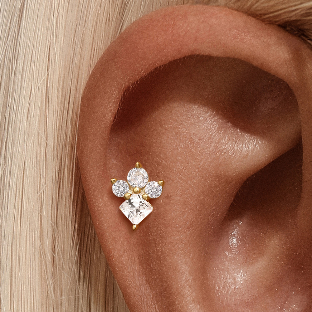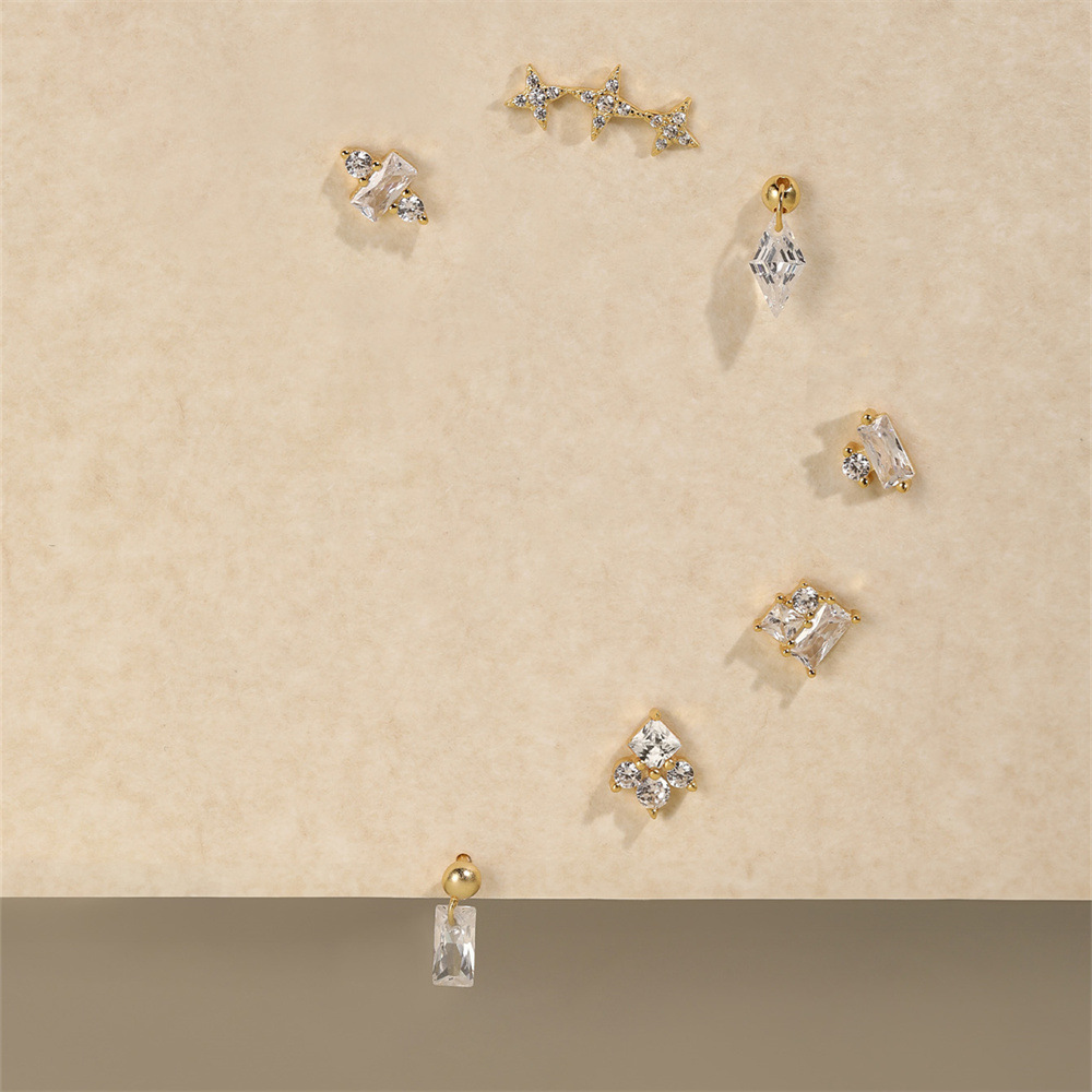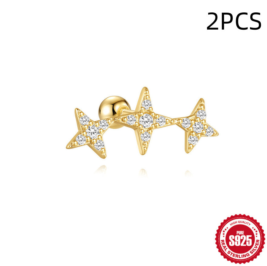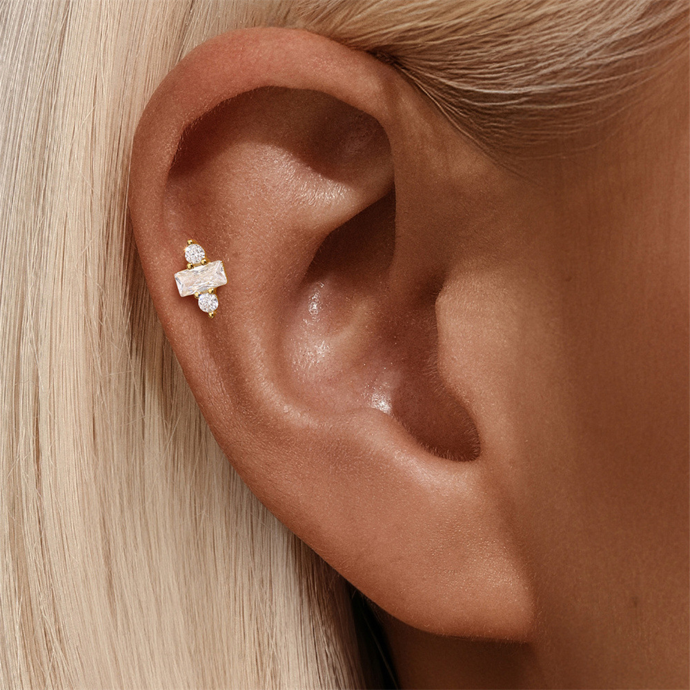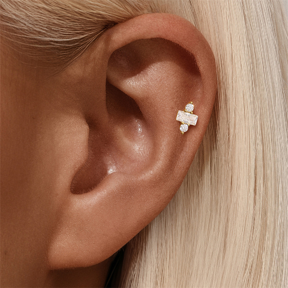 S925 Sterling Silver Red Earrings Square Gravel Stud Earrings