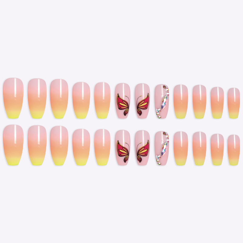 Simple Yellow Gradient Fake Nails Yellow Ballet Shoes Shape Manicure Nail Nail Piece Box