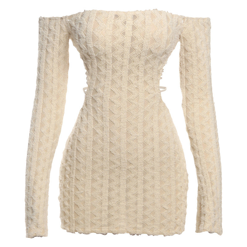 Solid Color High Waist Slim Fit Backless Off-shoulder Dress