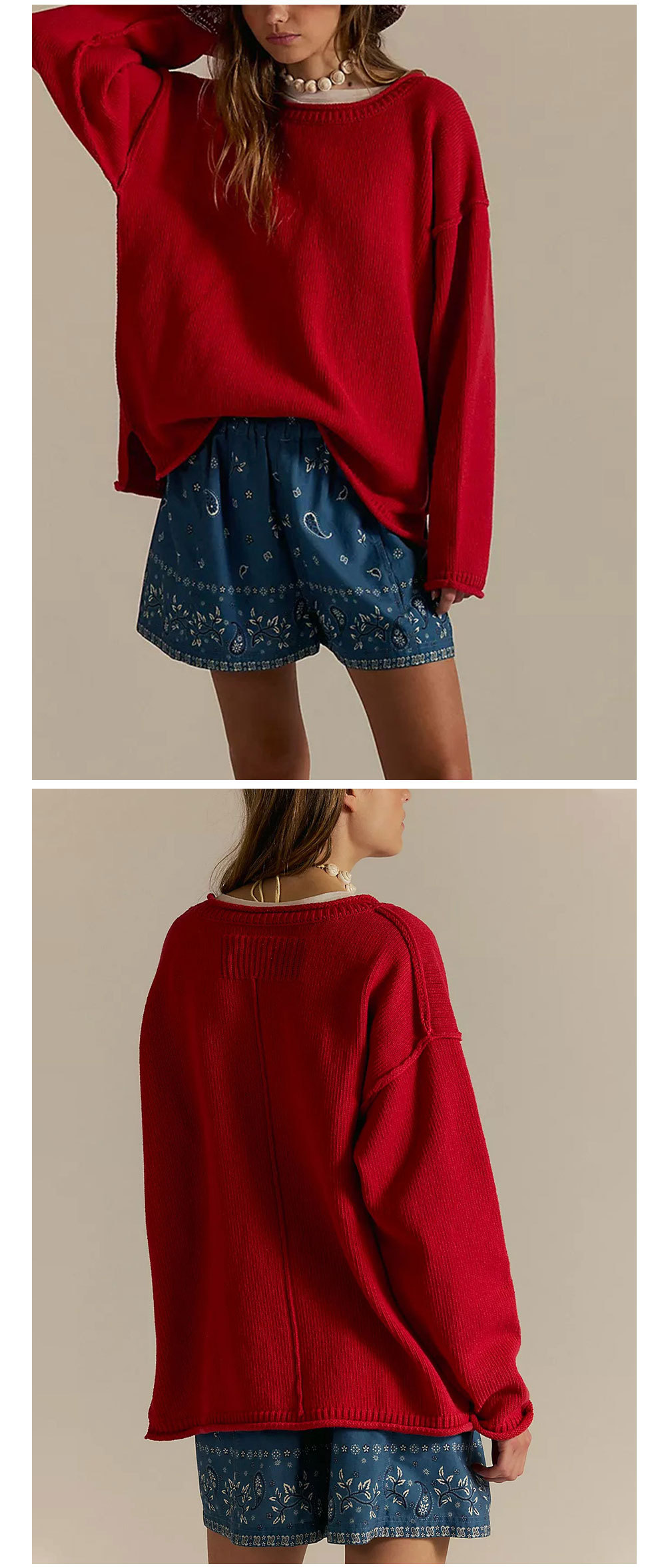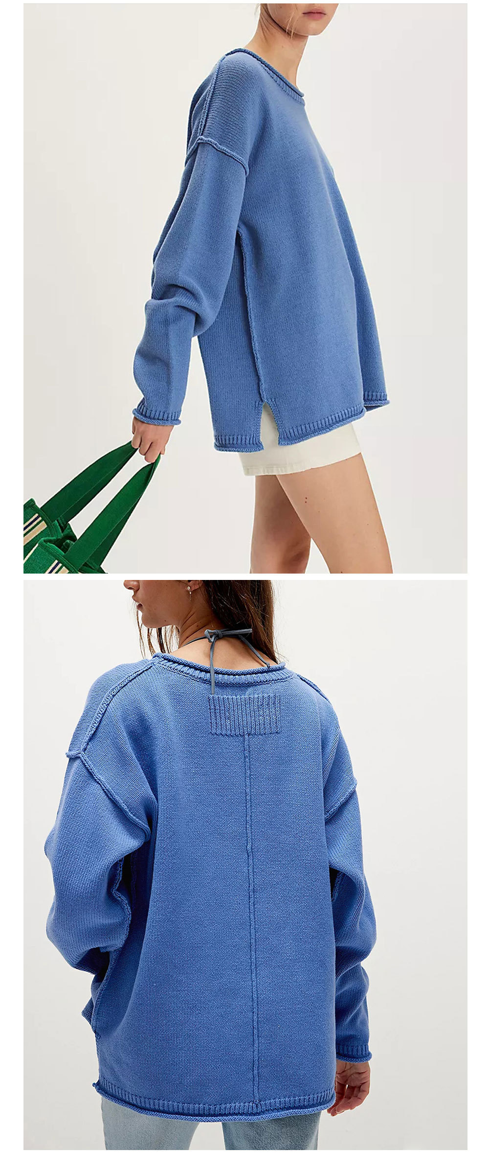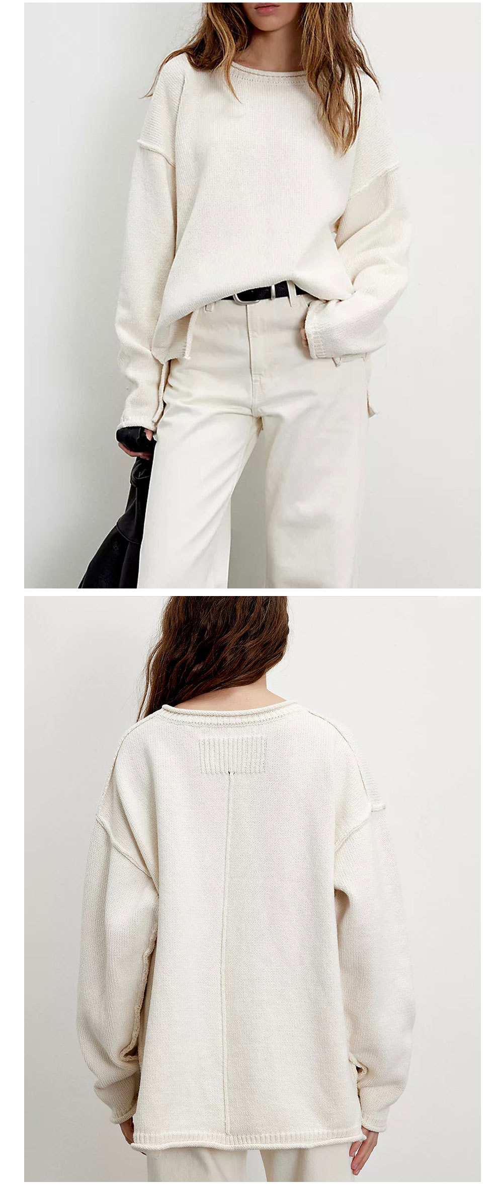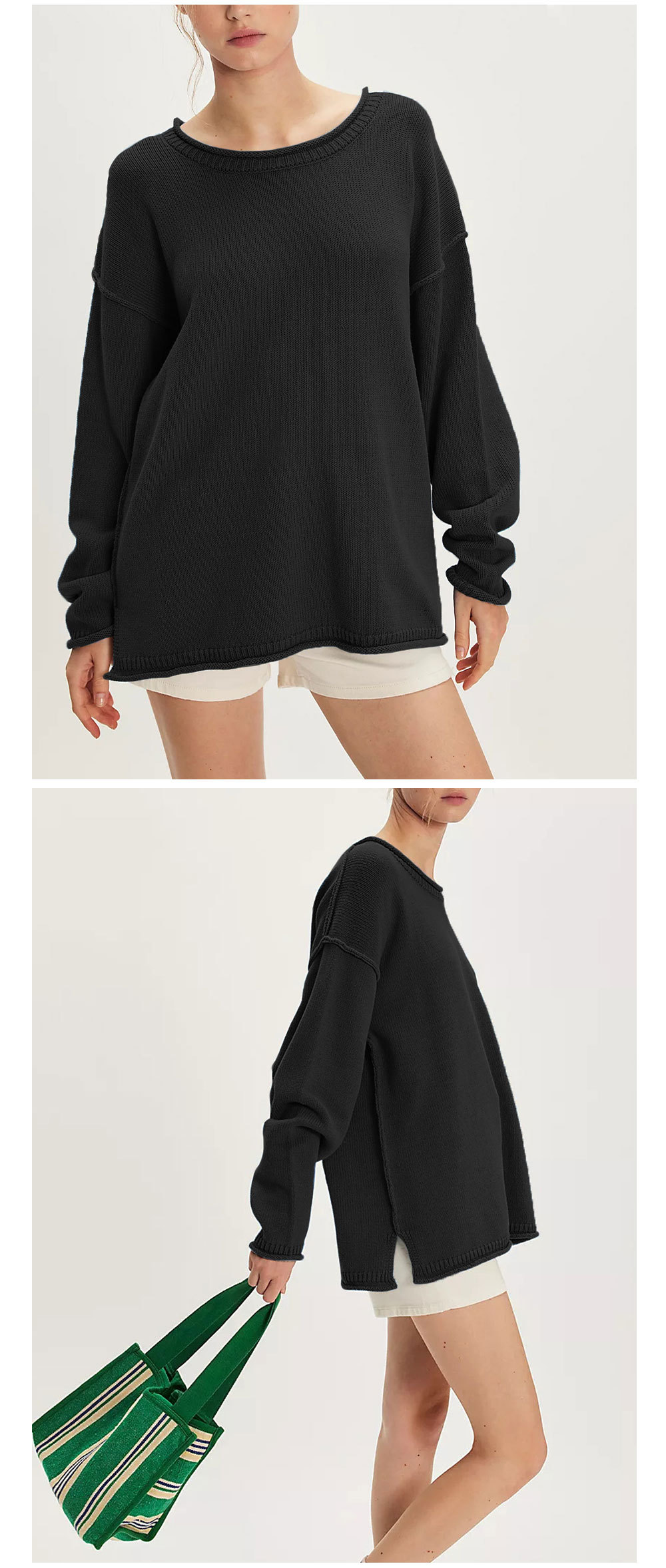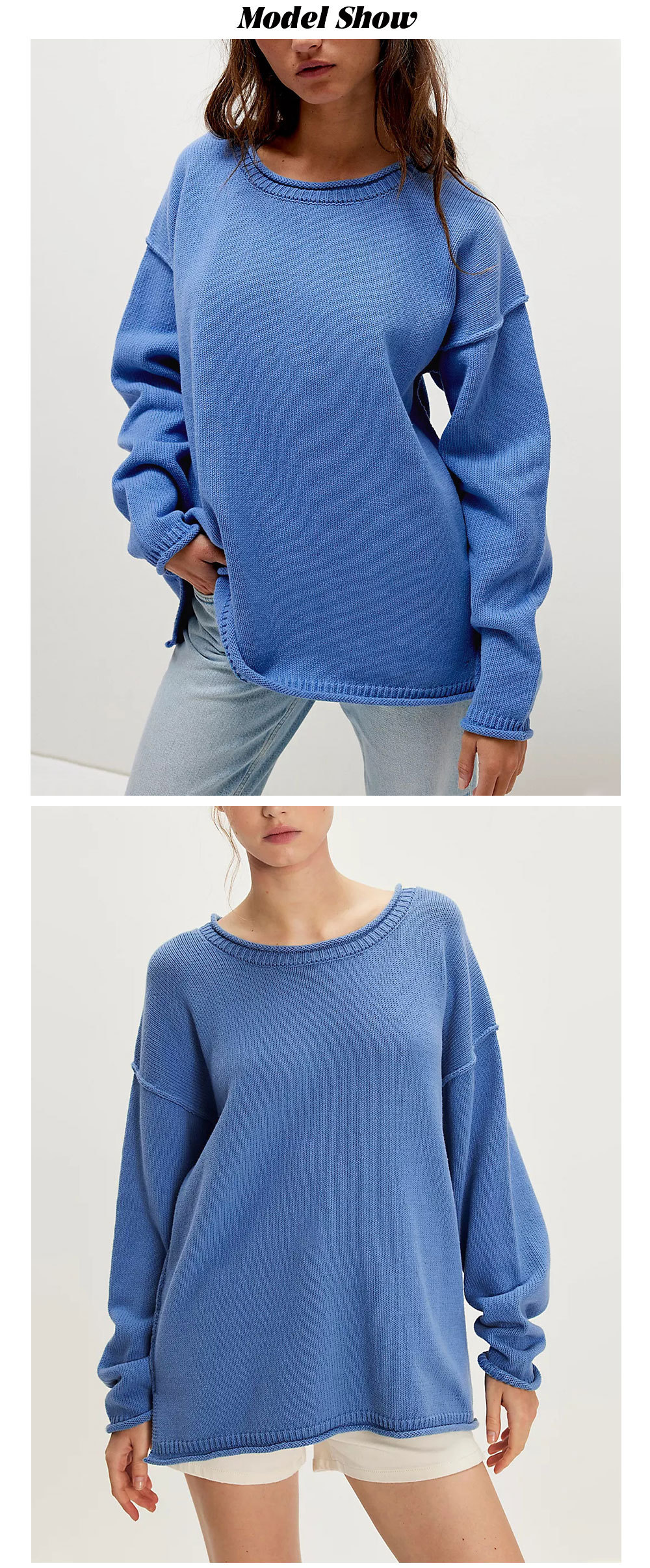 Solid Color Round Neck Loose Versatile Basic Pullover Sweater