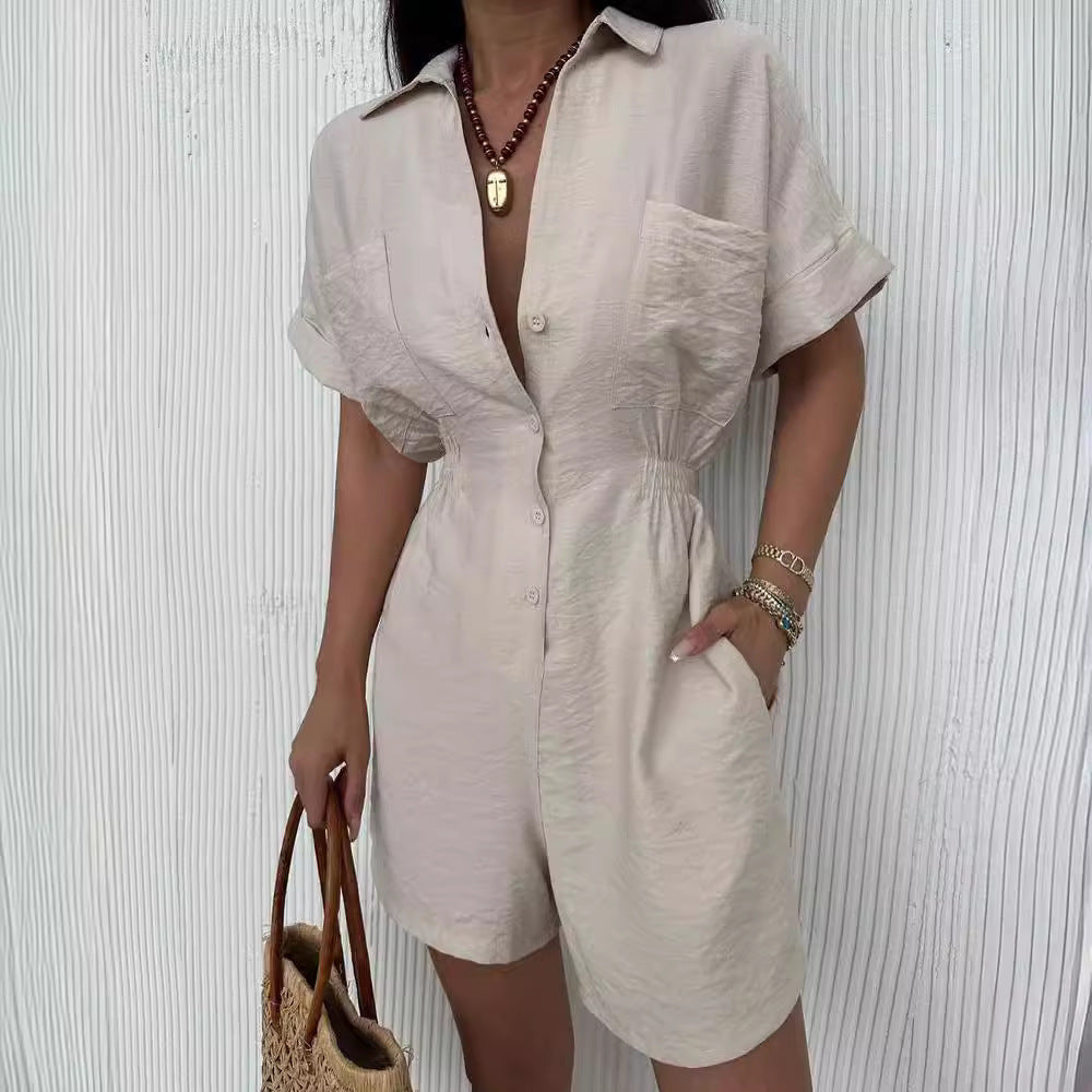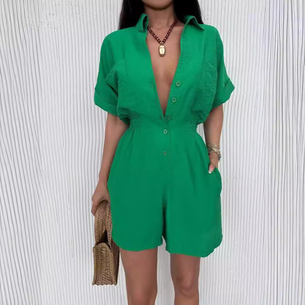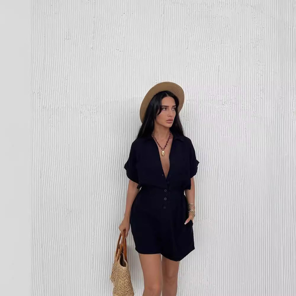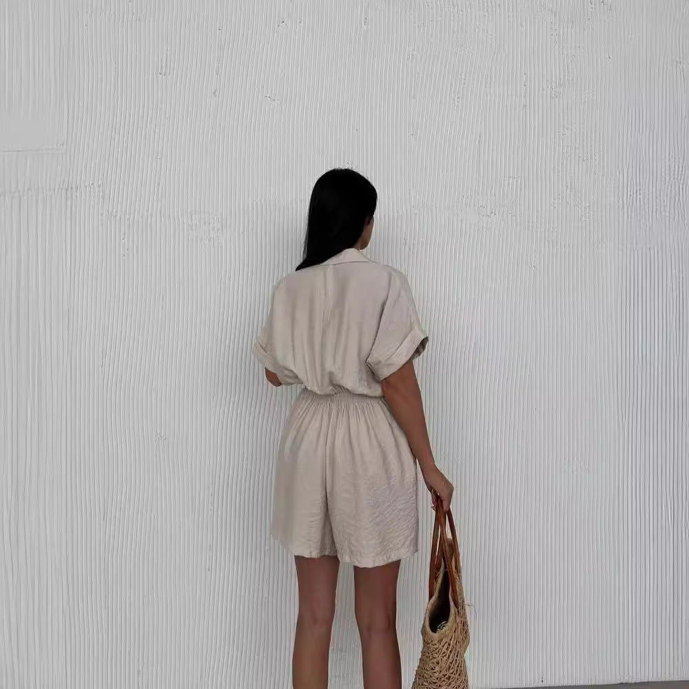 Solid Color Short Sleeve Casual Loose One-piece Shorts Suit