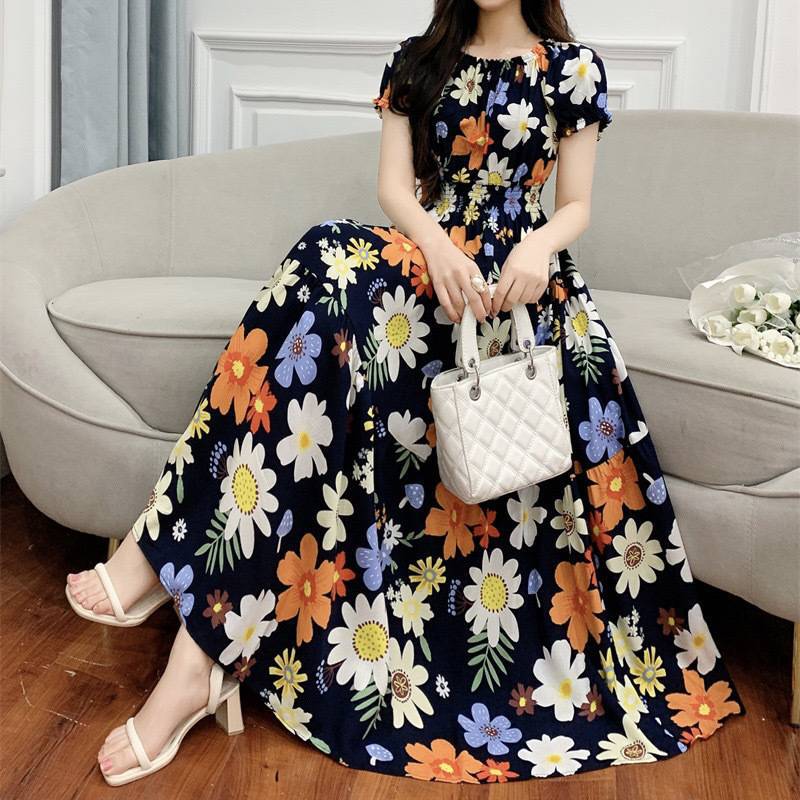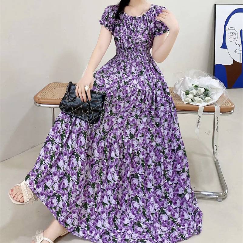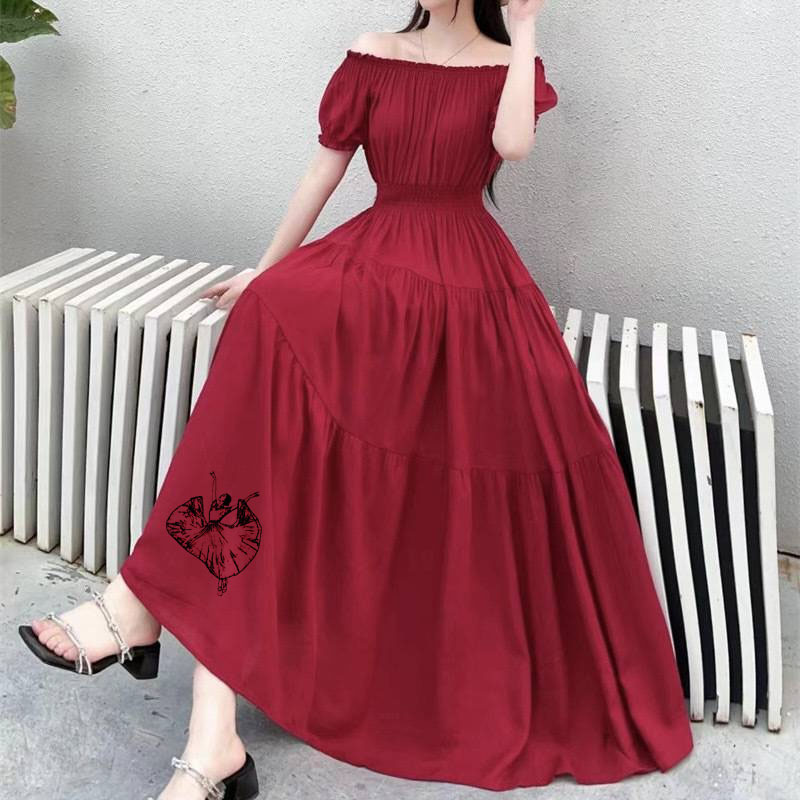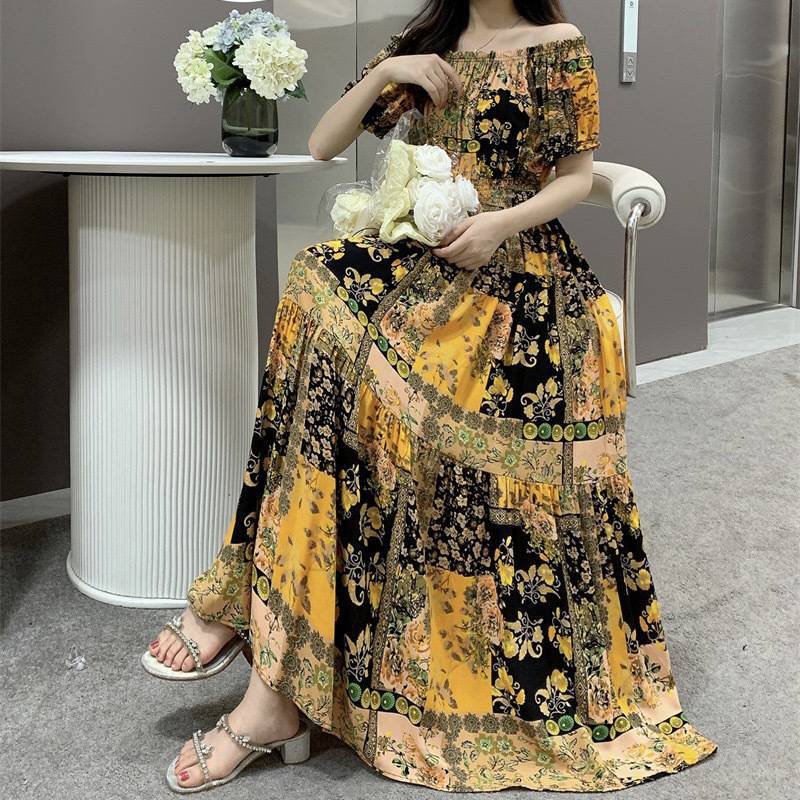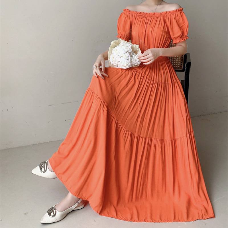 Solid Color Wide Hem Cotton Silk Vacation Style Long Bohemian Dress