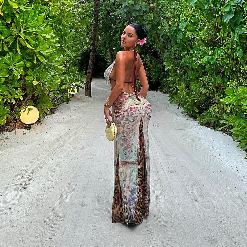 Spaghetti-strap Floral Print Waist-baring Summer New Backless Dress