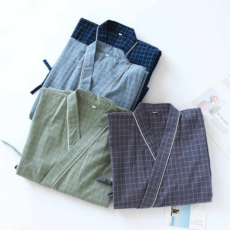 Spring And Summer Japanese Men's Kimono Nightgown Bathrobe Washed Cotton Gauze